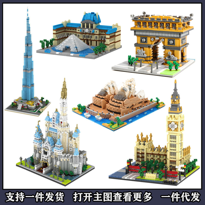 国境を越えた世界のランドマーク建築積み木ルーブル美術館城の組み立て玩具の粒子模型がロンドン橋を飾っている