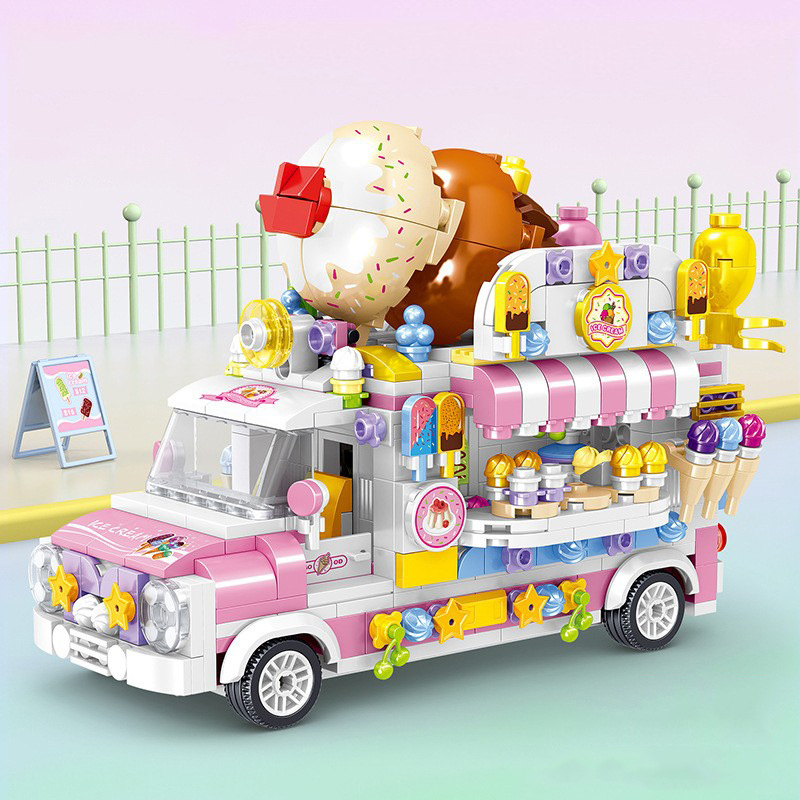 哲高00888アイスクリームのグルメ車の積み木販売車の越境児童の創意は街の風景の積み木のおもちゃをつづり合わせます。