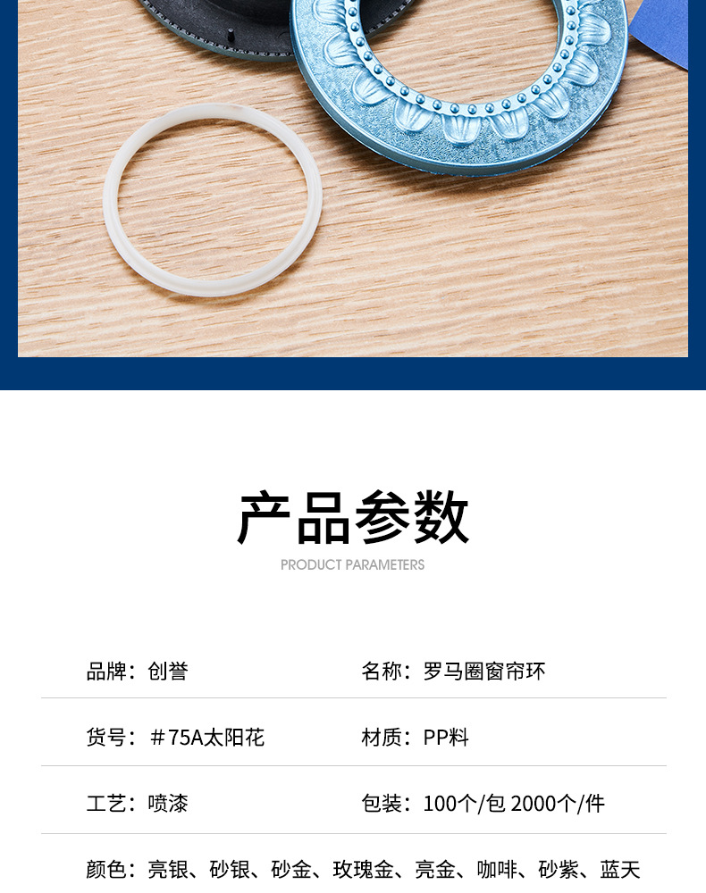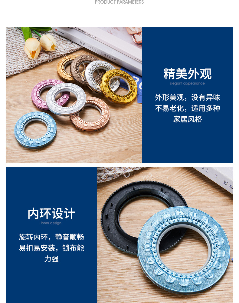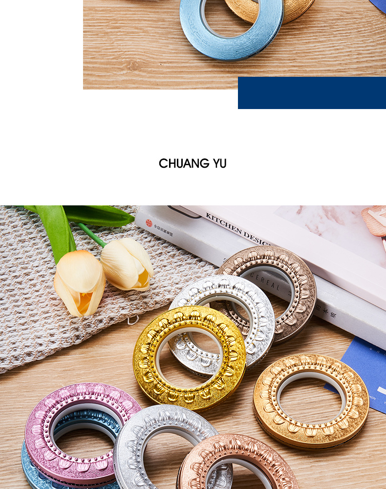 メーカー卸売りpp家庭用現代シンプルなカーテンリング75太陽花吊り式消音リングカーテン部品