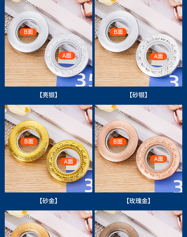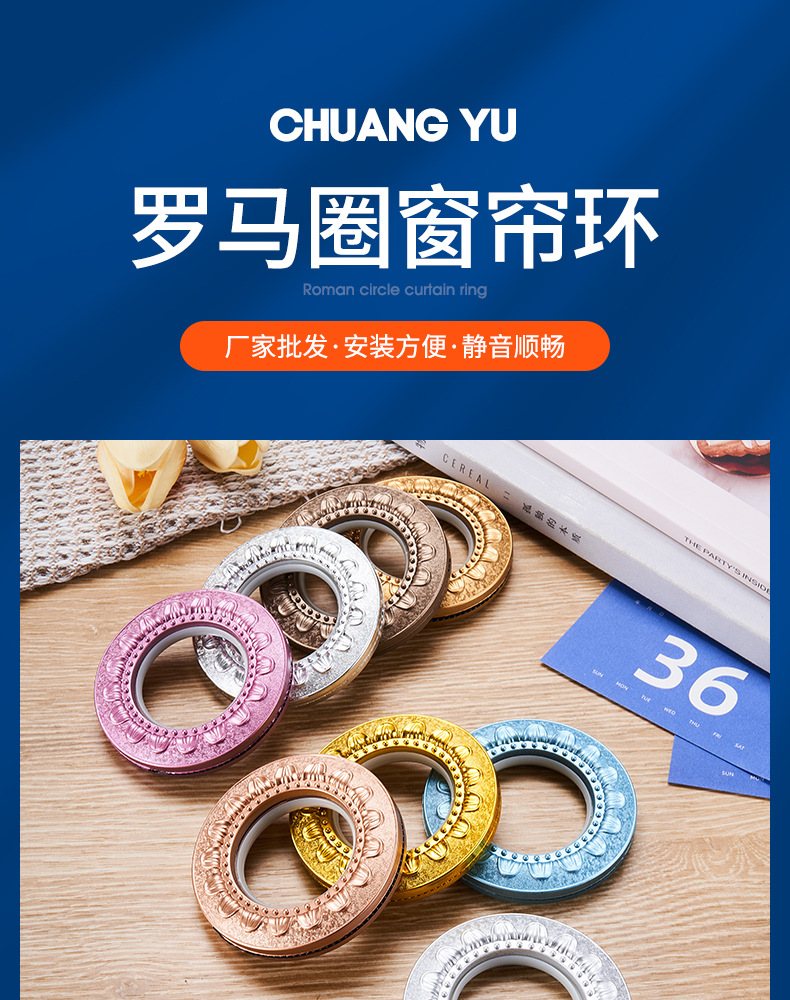 ローマリングカーテンリング穴開けリング太陽花芸術リングナノ静音リングボタンリングカーテン補助材料部品