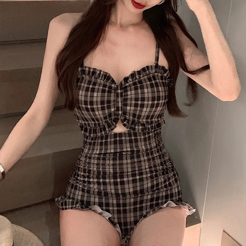 水着 2021 韓国インワンピース小胸プッシュアップ痩身お腹カバーバックレス三角レディース水着日焼け止めスリムフィット