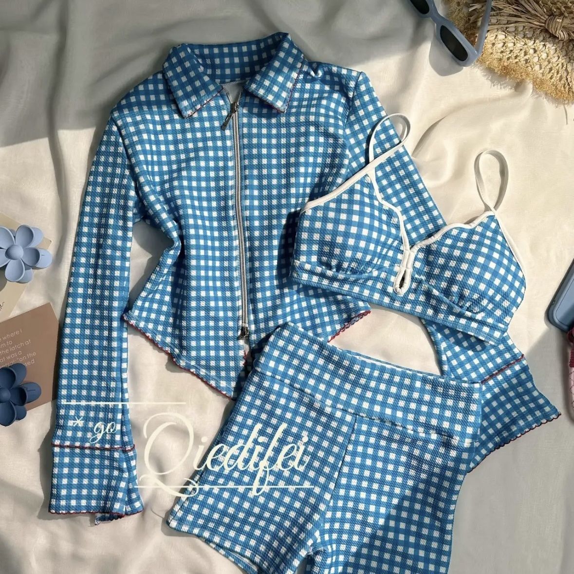 2025新型水着女性甘美分体ビキニ小胸が海辺に集まって温泉水着を3点セット