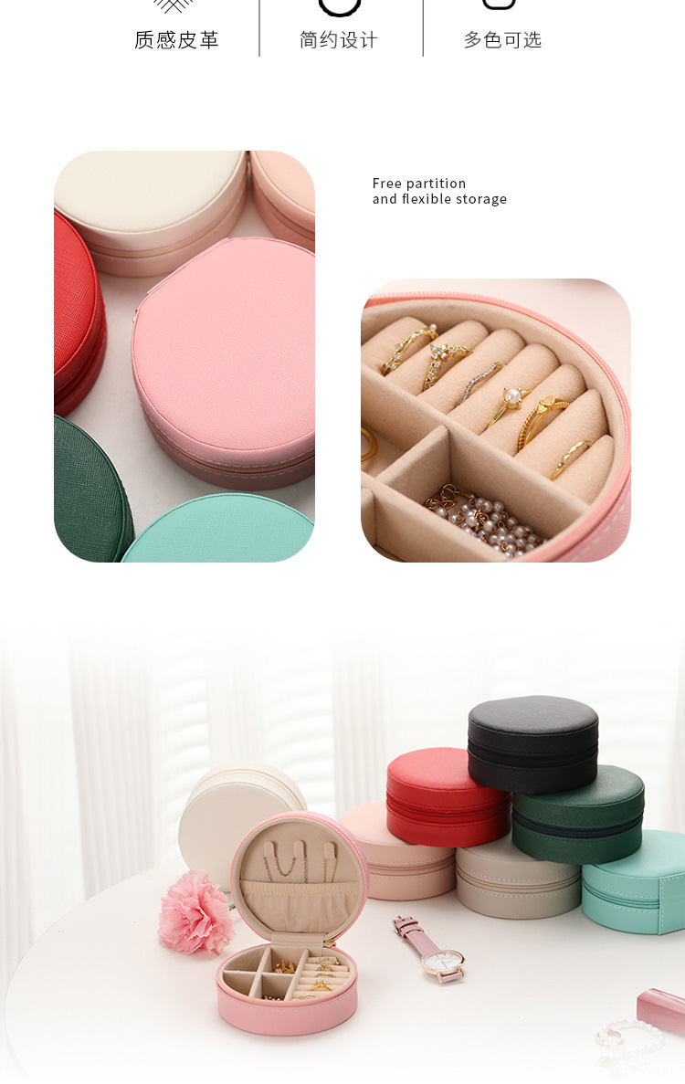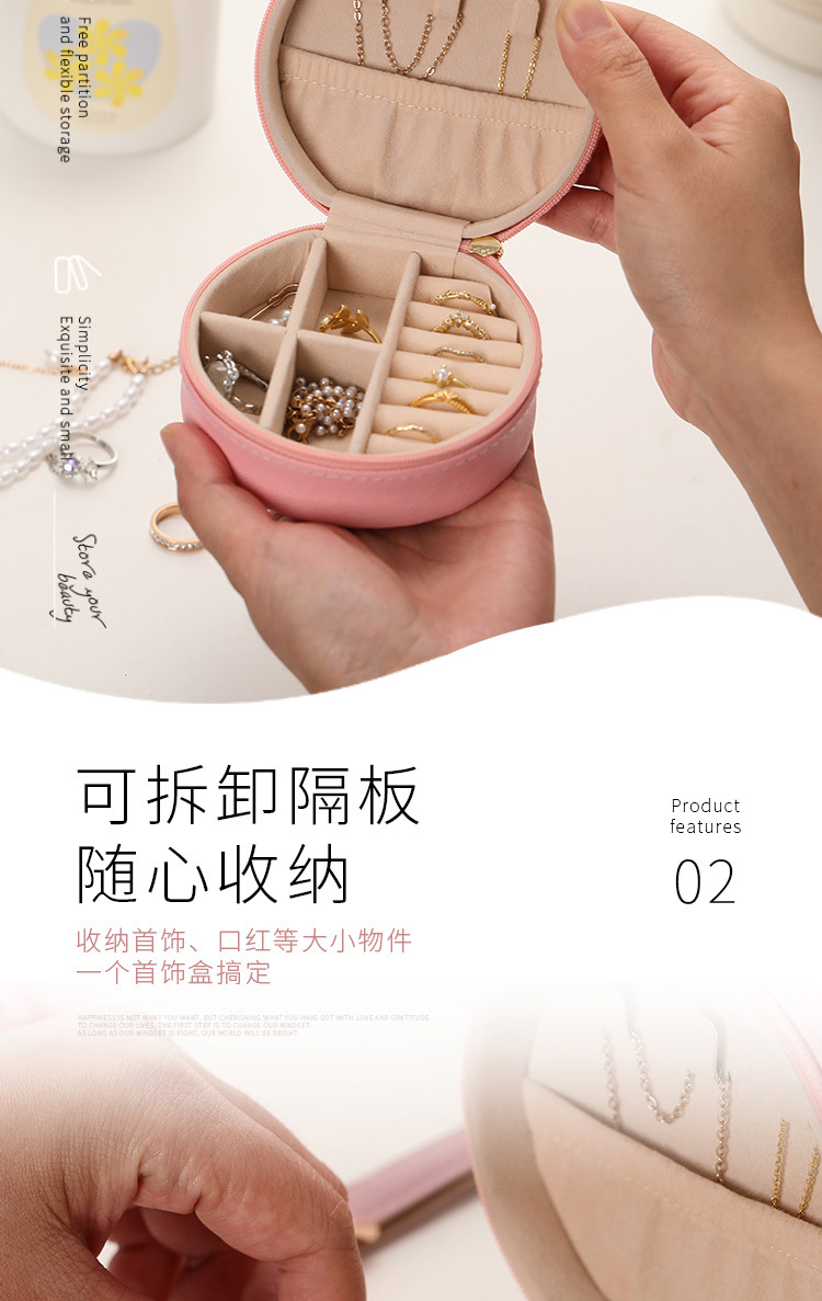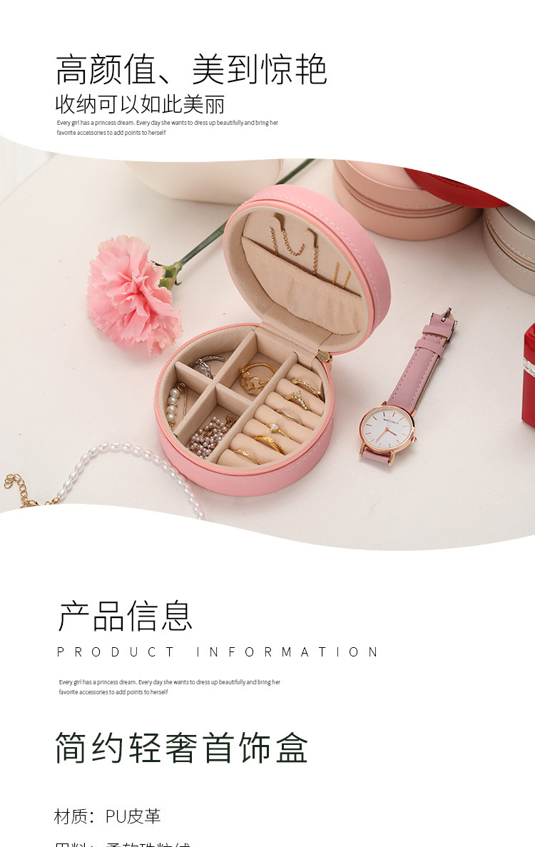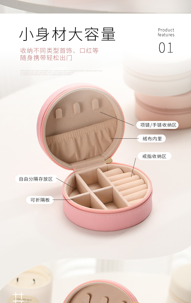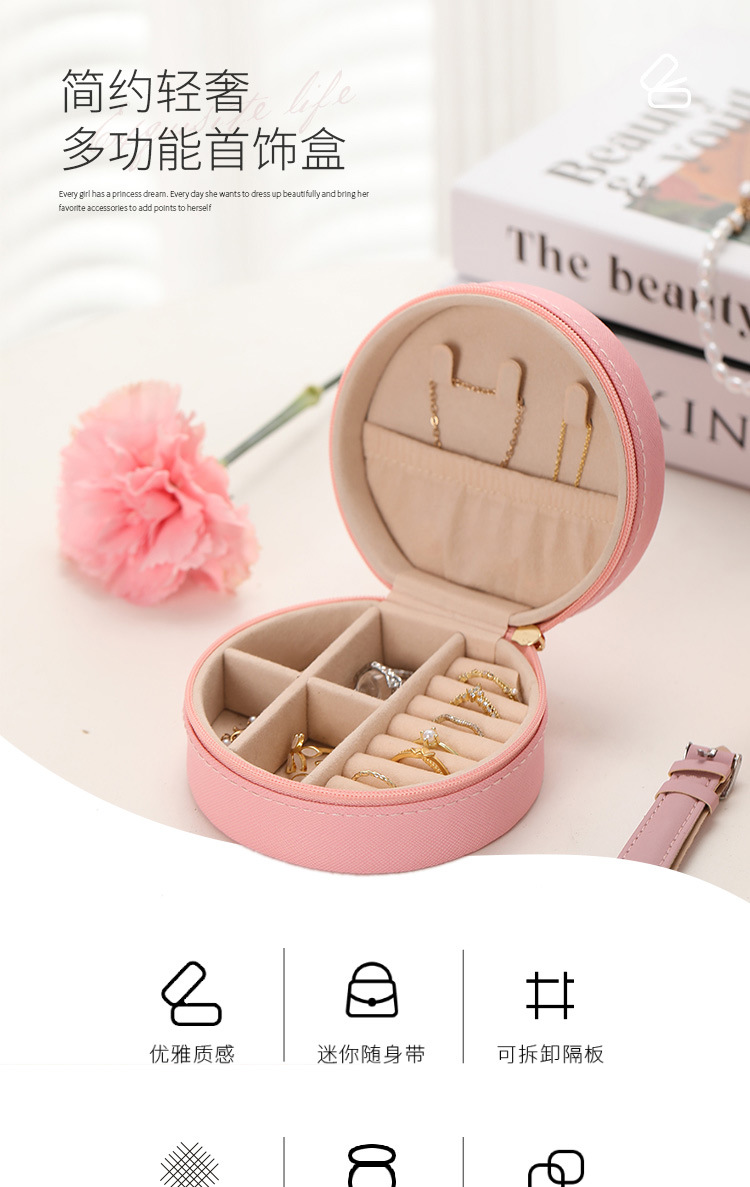 圆形项链戒指饰品首饰盒旅行便携耳钉耳饰收纳多功能珠宝首饰盒