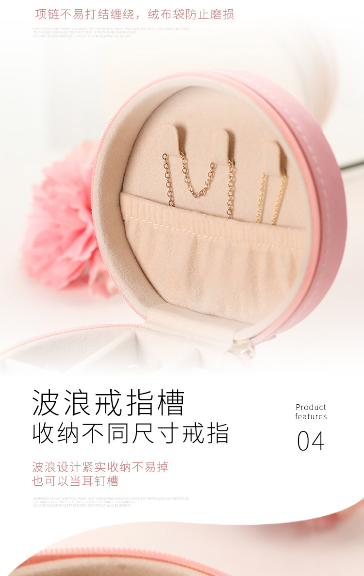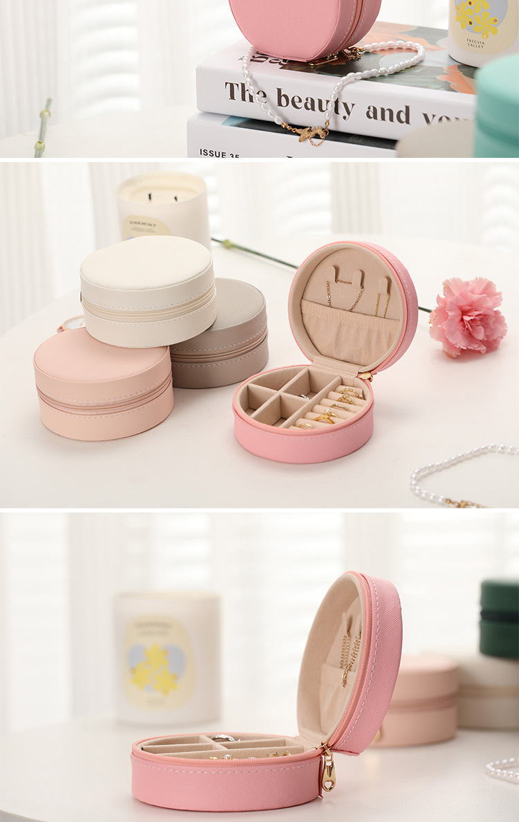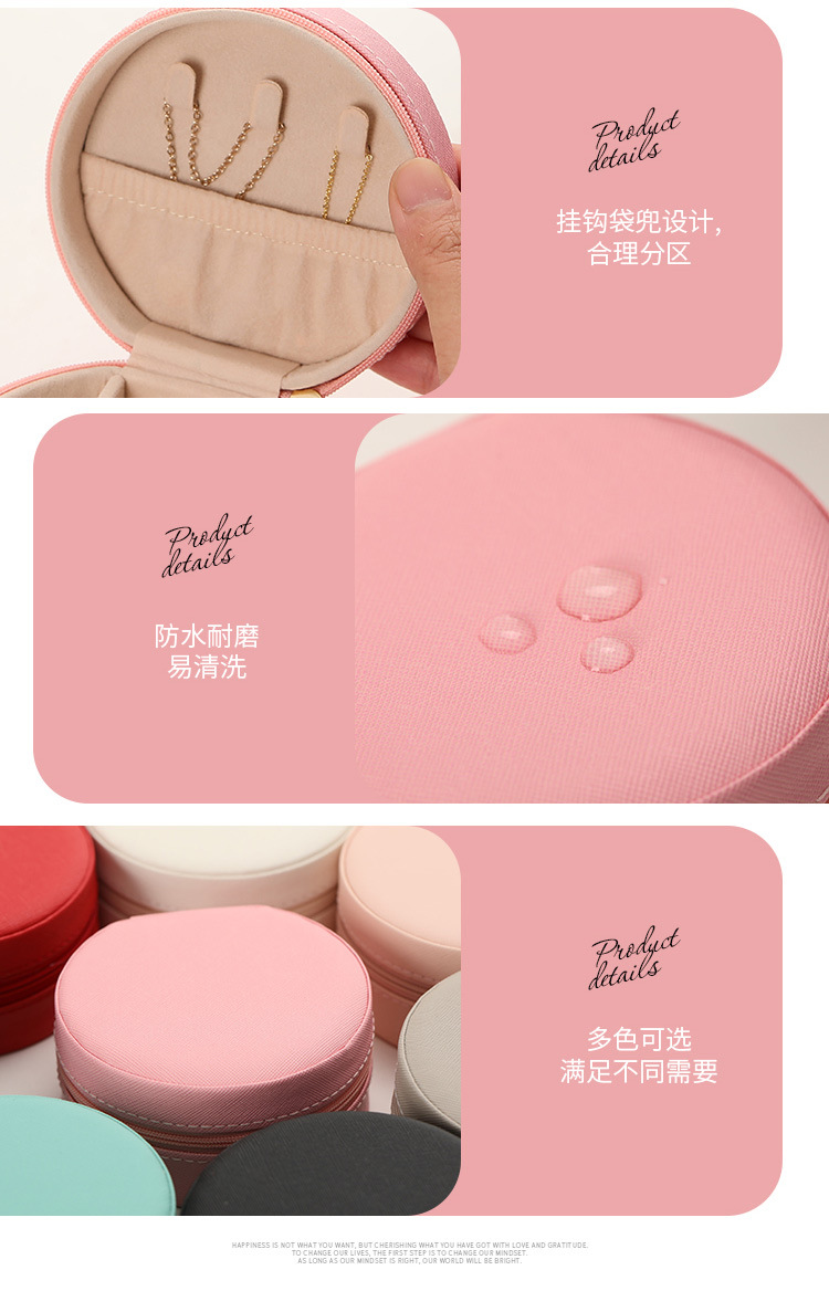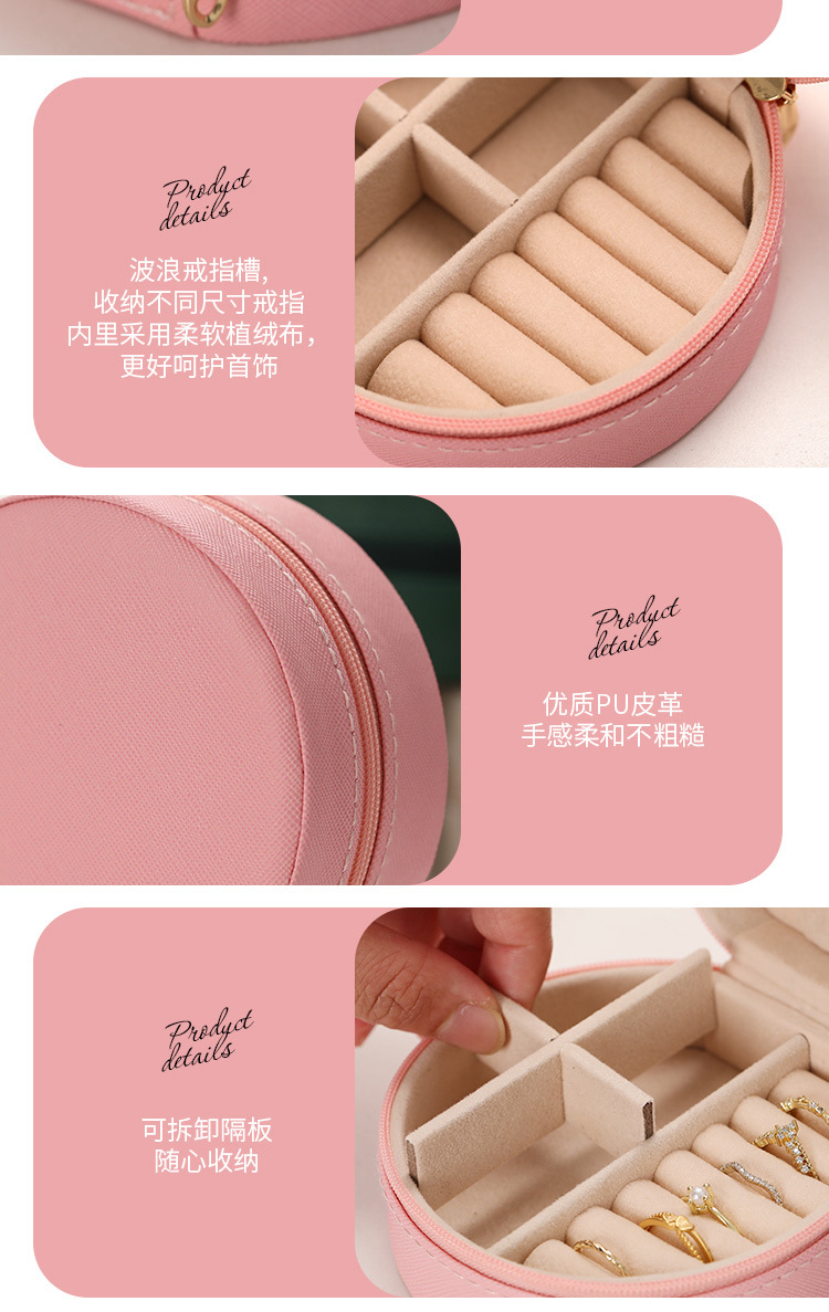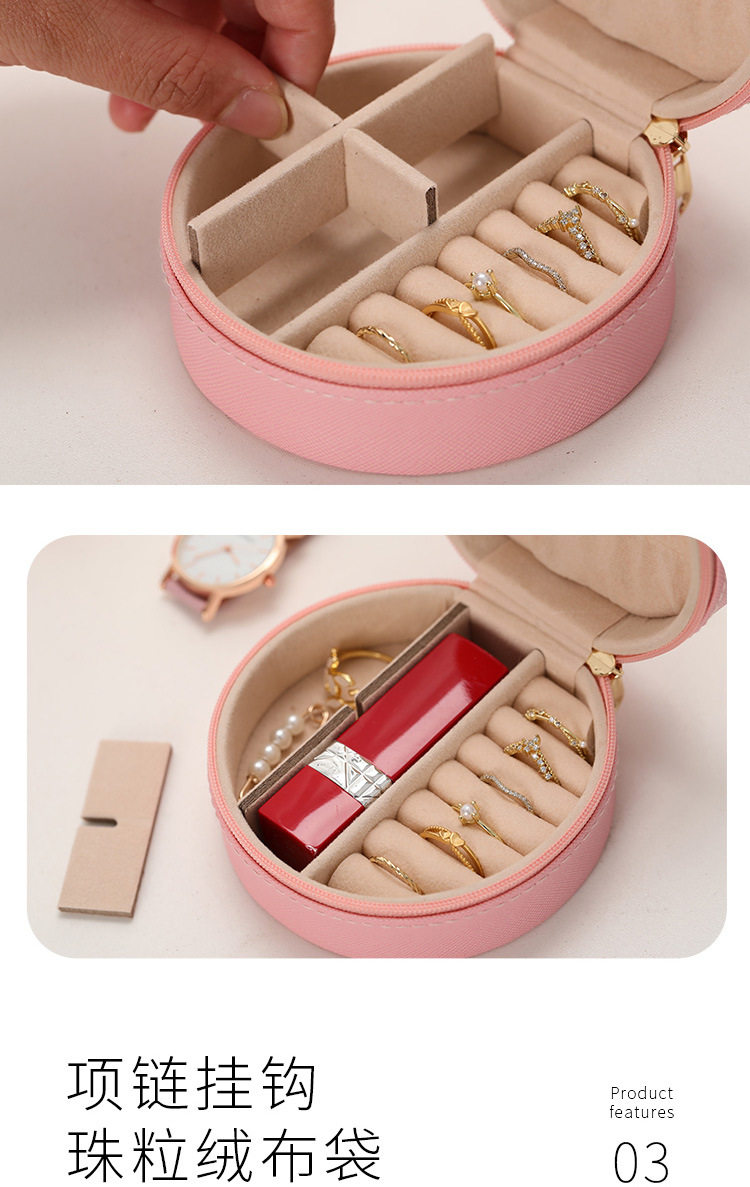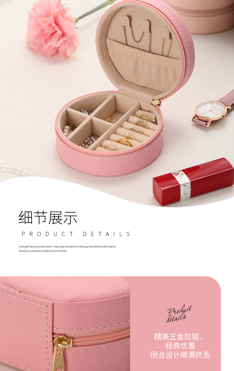 圆形项链戒指饰品首饰盒旅行便携耳钉耳饰收纳多功能珠宝首饰盒