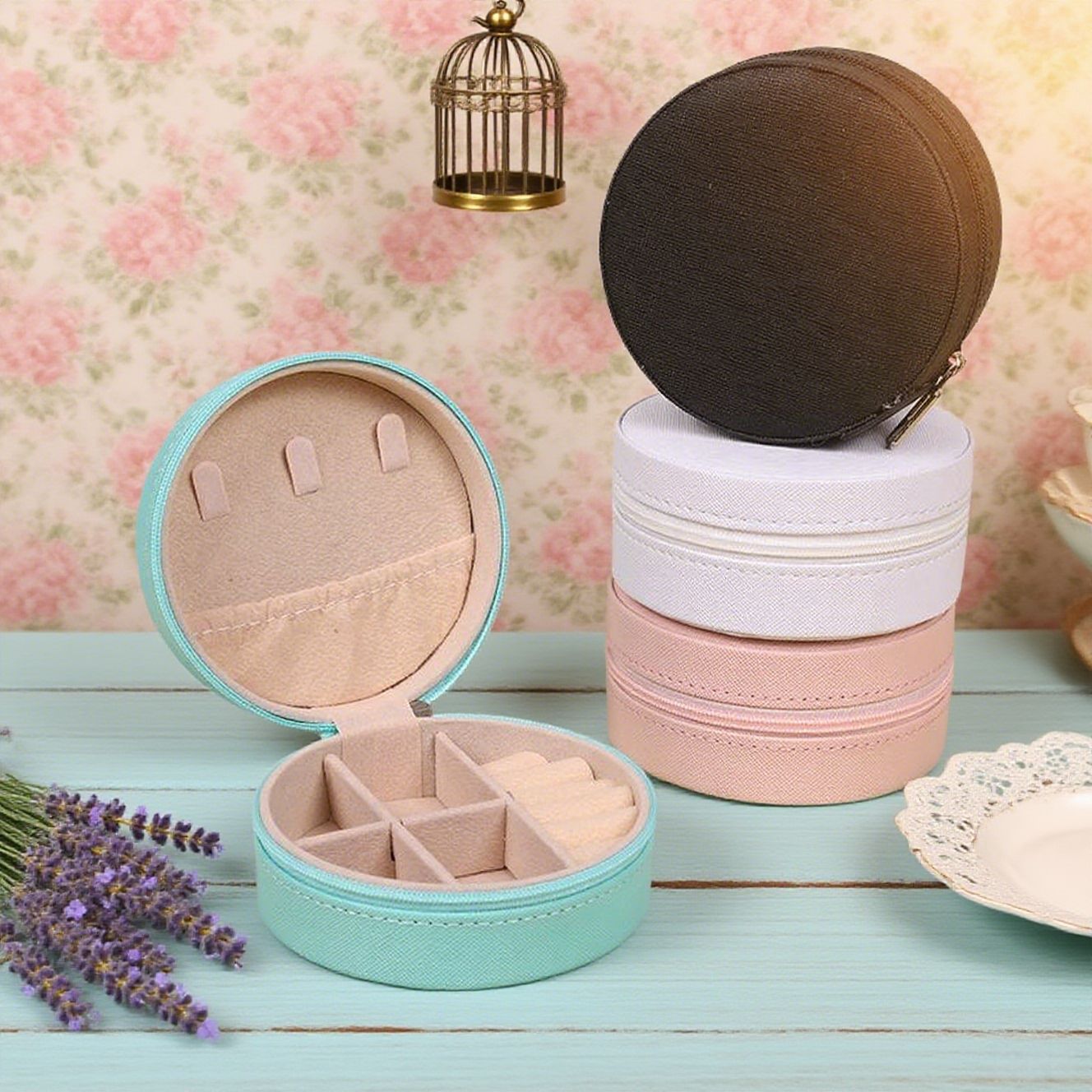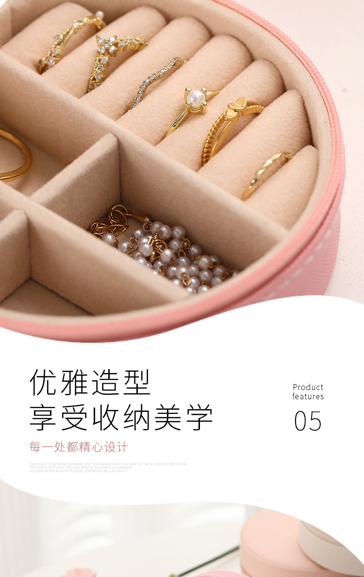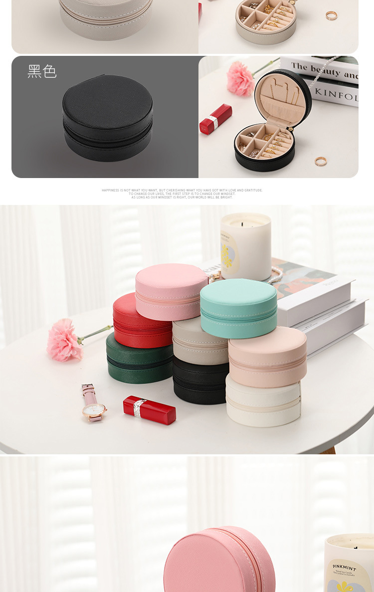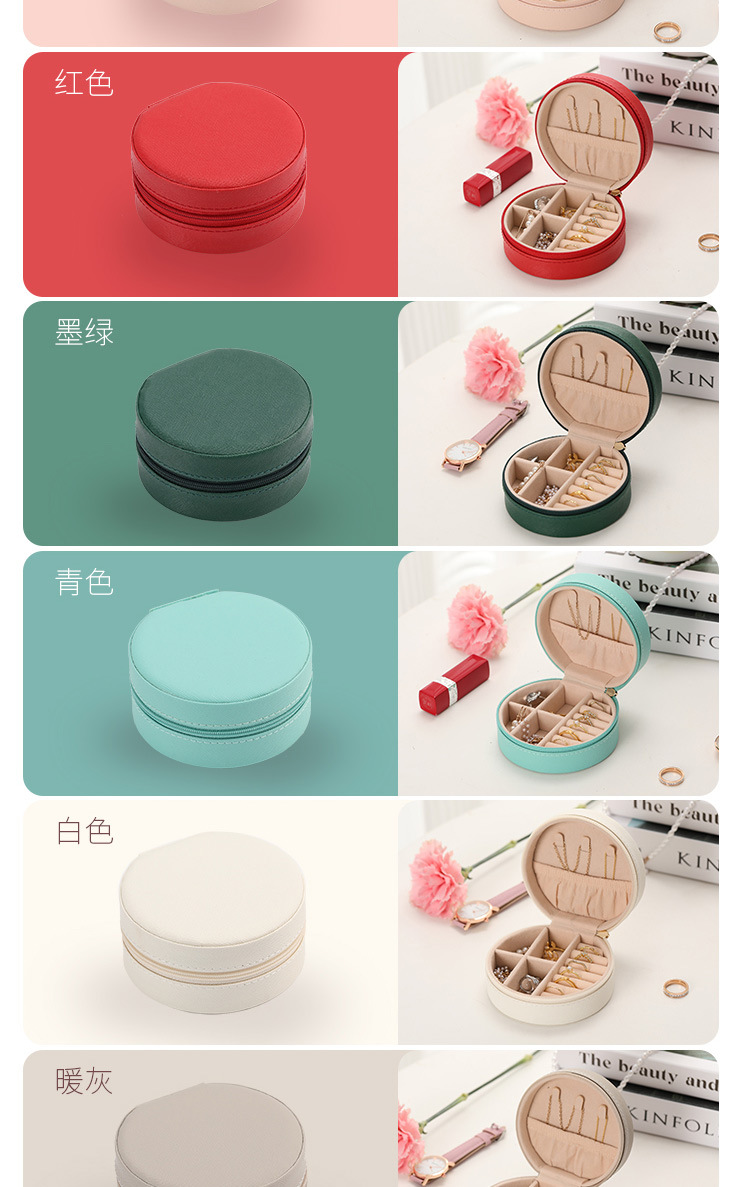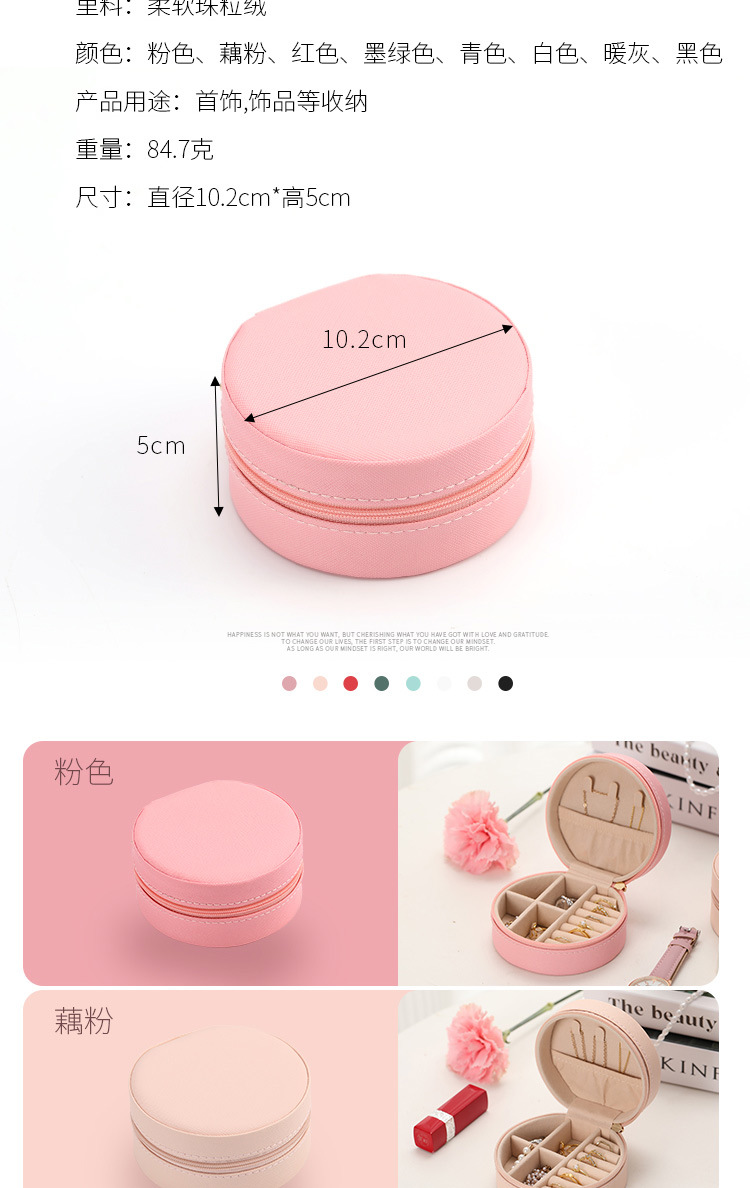 圆形项链戒指饰品首饰盒旅行便携耳钉耳饰收纳多功能珠宝首饰盒