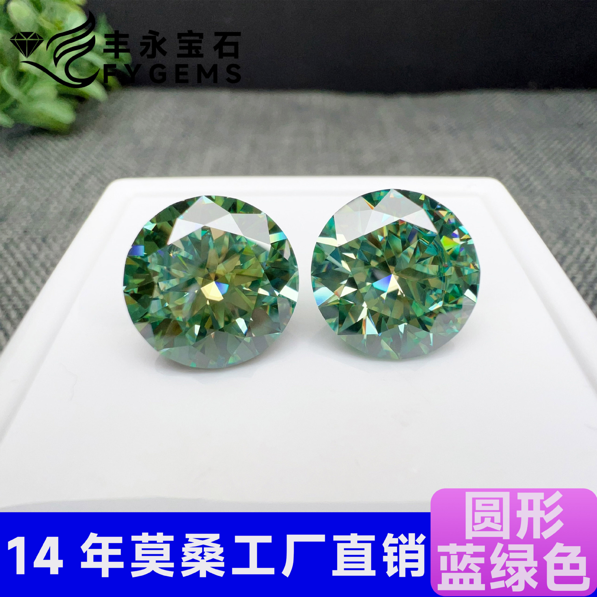 ラウンドモアサナイト原色ハイランブルーグリーン0.1-10カラット裸石エイトハートエイトアロー梧州工場製、インレイ可能、ベルト付き