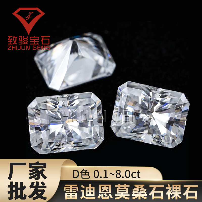 梧州工厂高品质新D/DE色长枕形老欧切莫桑石裸石0.5-3ct配GRA证