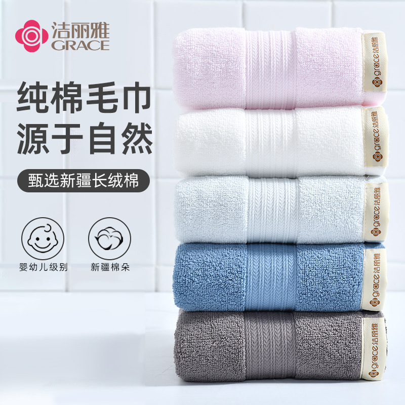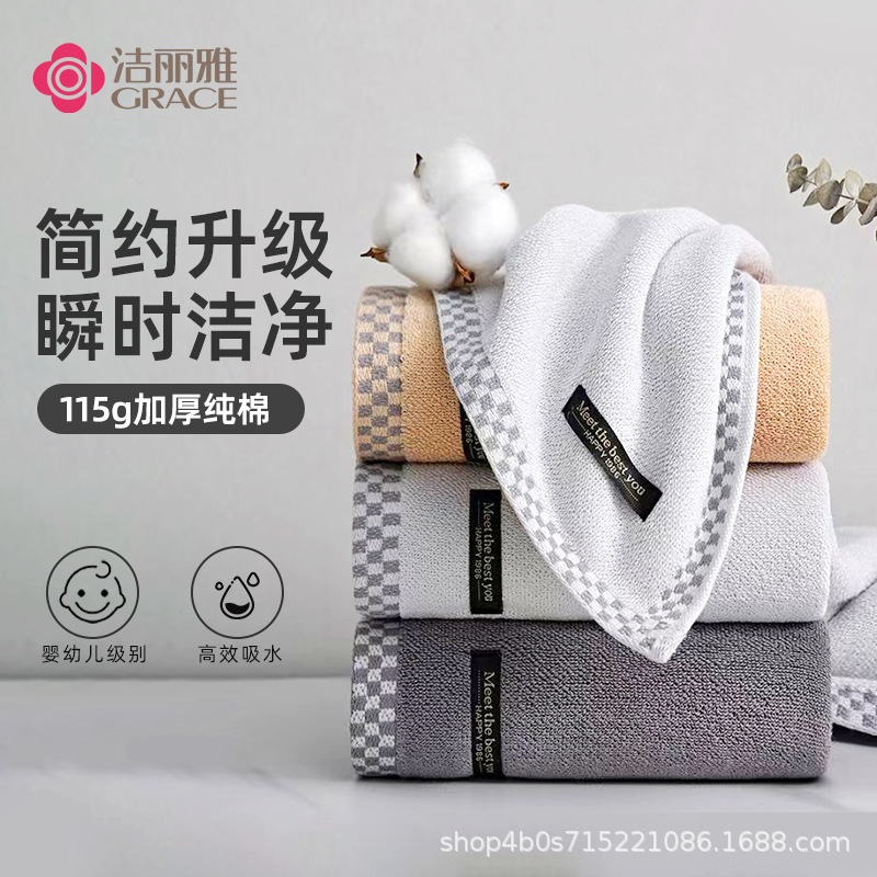 洁丽雅毛巾简约欧格纯棉洗脸面巾加厚加宽家庭情侣款吸水柔软亲肤