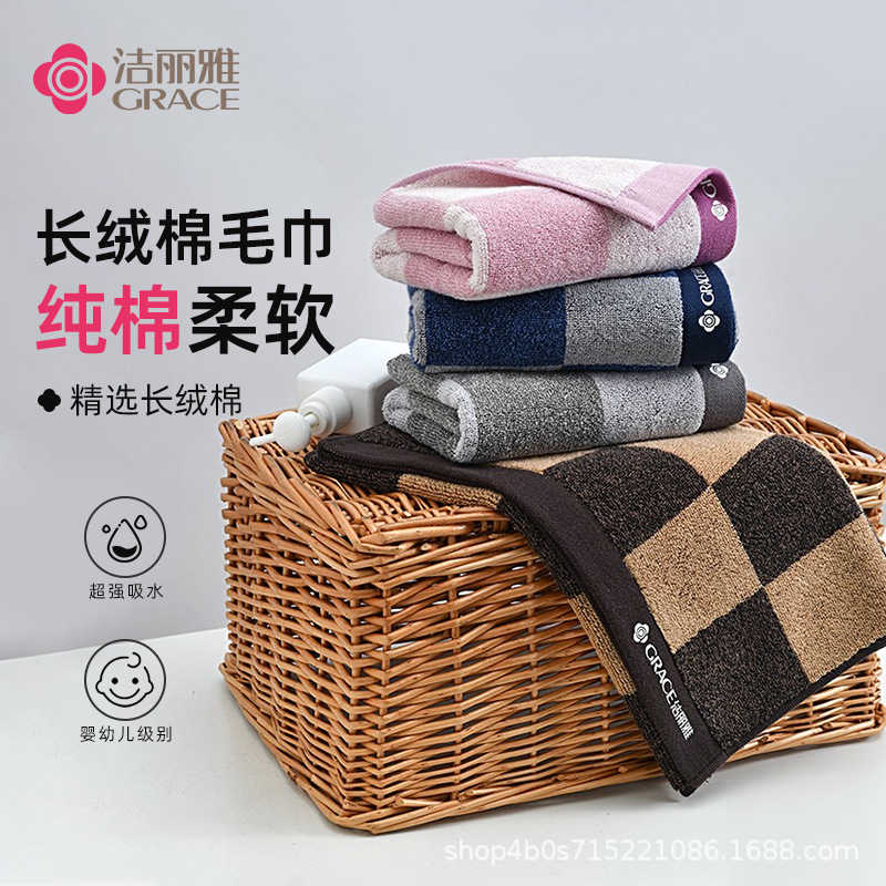 清潔麗雅タオル100% 新疆綿綿綿綿綿綿綿100% 古典的なチェス盤格家庭用成人洗顔タオル卸売り共同購入