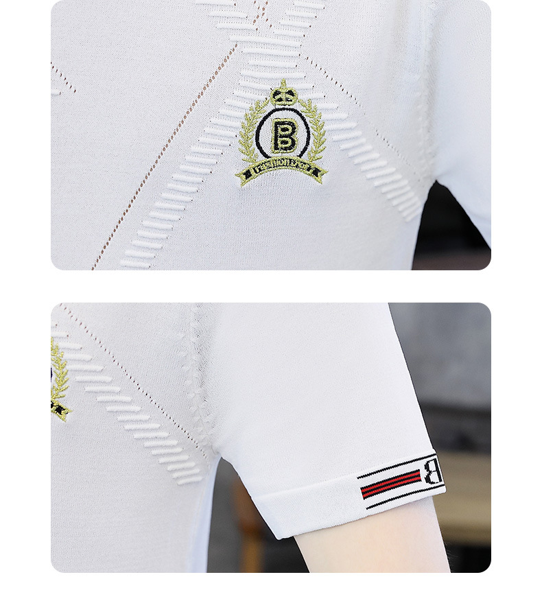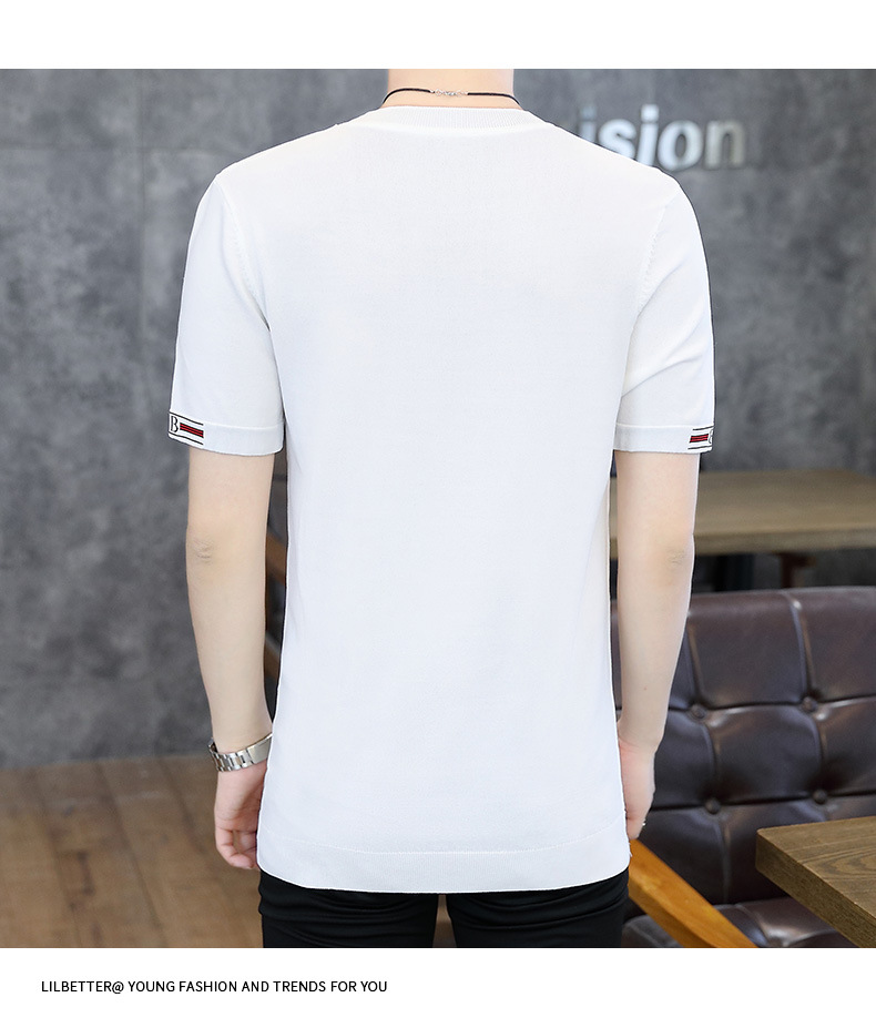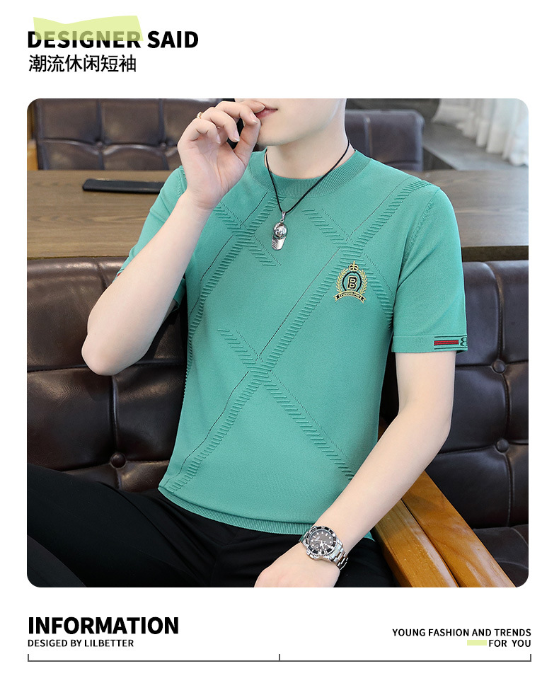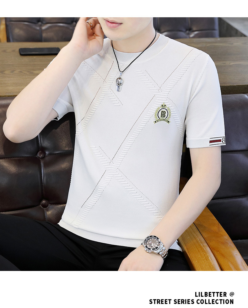 夏の薄い氷糸半袖tシャツ男性3d刺繍ニット半袖tシャツ夏服上着ブーム