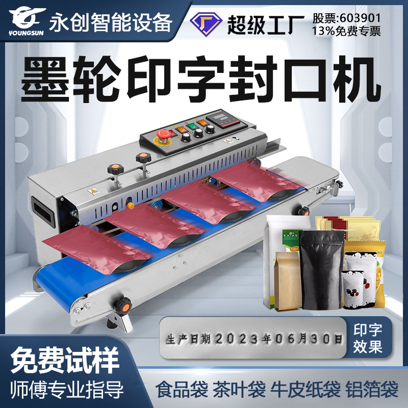 永創FR1000墨輪商用小型封口機茶葉食品袋全自動連続墨輪封口機工場
