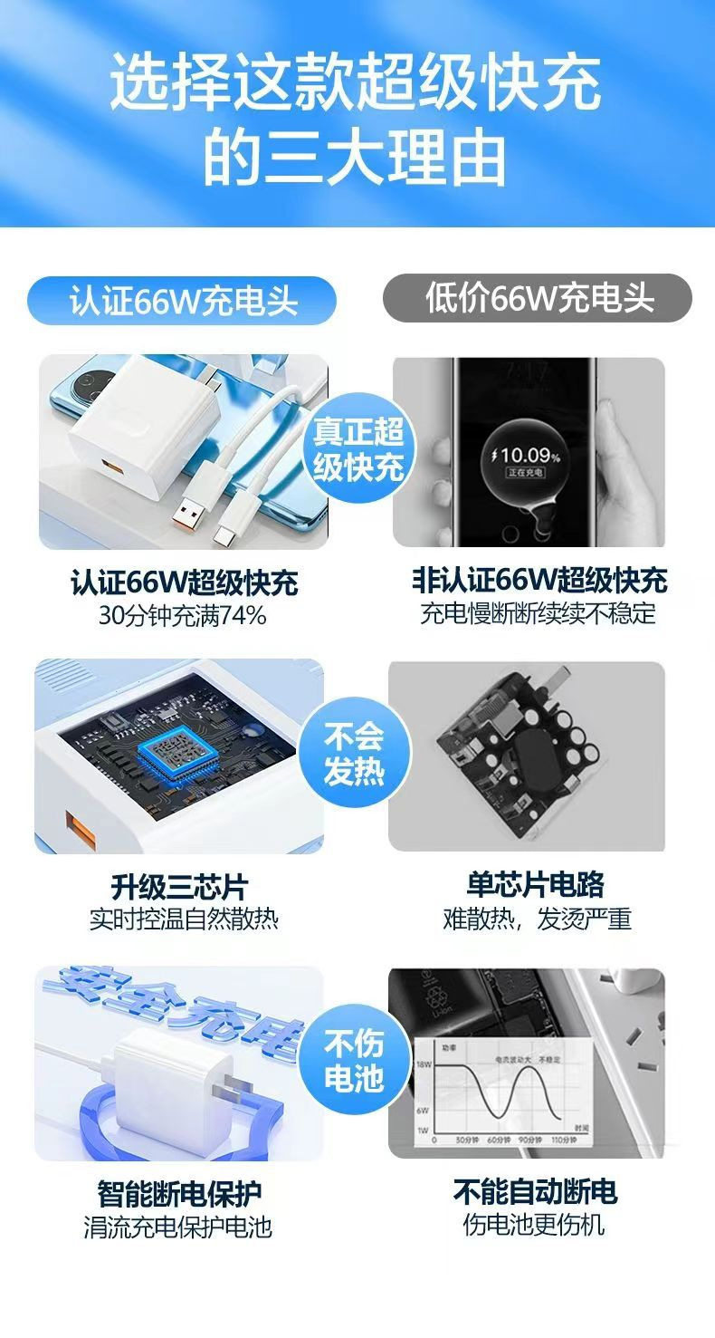 66W充电头适用华为充电器原厂3C认证荣耀手机超级快充头套装批发