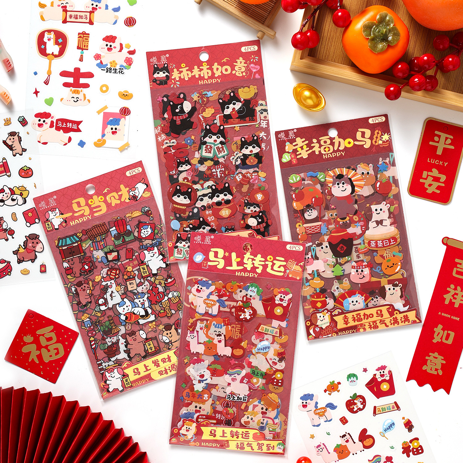 跨境专供马到福来2026新年手账贴纸 马年手账素材diy卡通贴纸批发