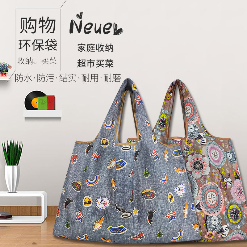 欧米の人気ポリエステル折り畳み環境保護レジ袋携帯収納袋超大型シングル肩スーパーレジ袋