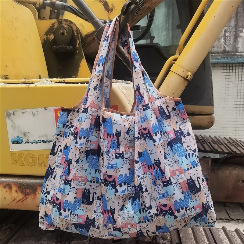 日韓大容量折り畳み可能なショッピングバッグ軽量スーパーエコバッグ携帯防水買い物バッグファッション手提げ袋