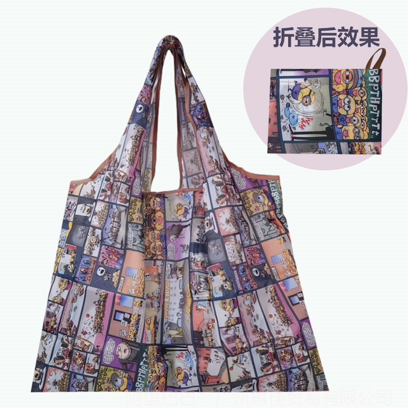 漫画旅行折りたたみショッピングバッグワンショルダー軽量ポータブル大型大容量ポータブル環境に優しいスーパーマーケット食料品ショッピングバッグ