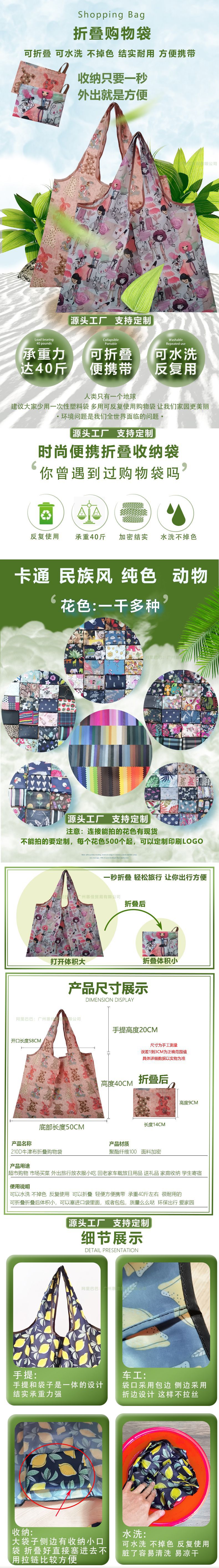 防水印刷カスタム収納大容量軽量携帯環境保護袋折り畳み可能なレジ袋手提げ袋買い物バッグ布袋