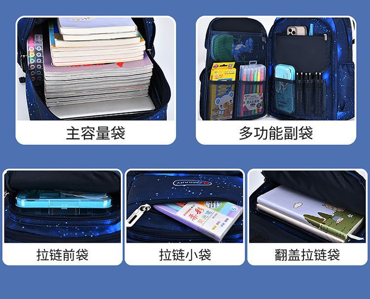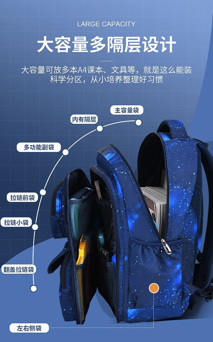 卸売りの新型星空の子供の小学生の男性のかばんの1-3-6学年の軽くて汚れに耐えるランドセルの工場は直接販売します。
