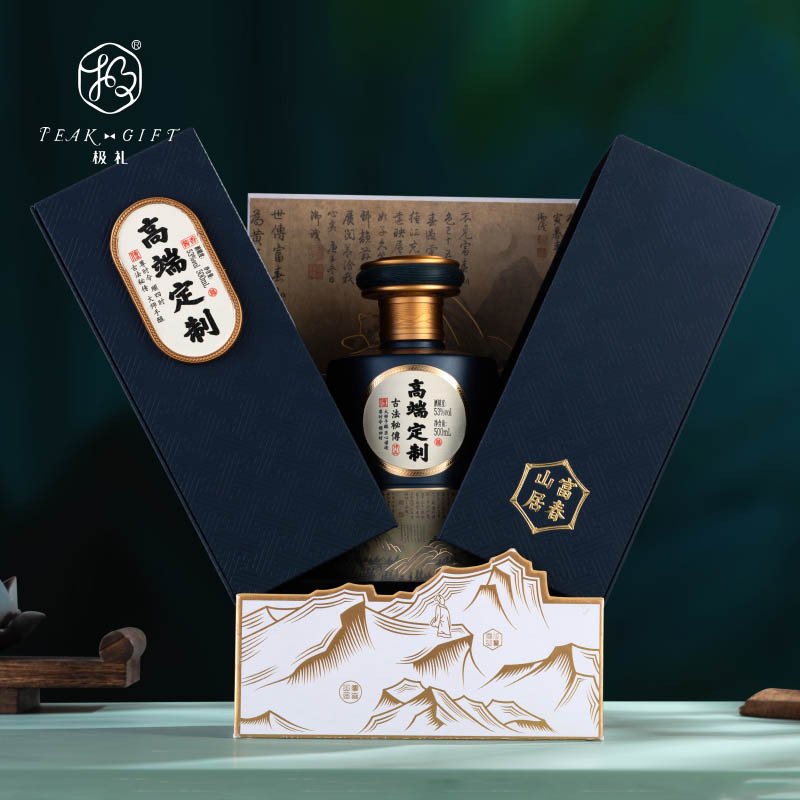 高級酒瓶の外の包装箱は二重に開けて酒の包装の本の型を開けて手の酒の箱をひっくり返して酒の包装を作ります。