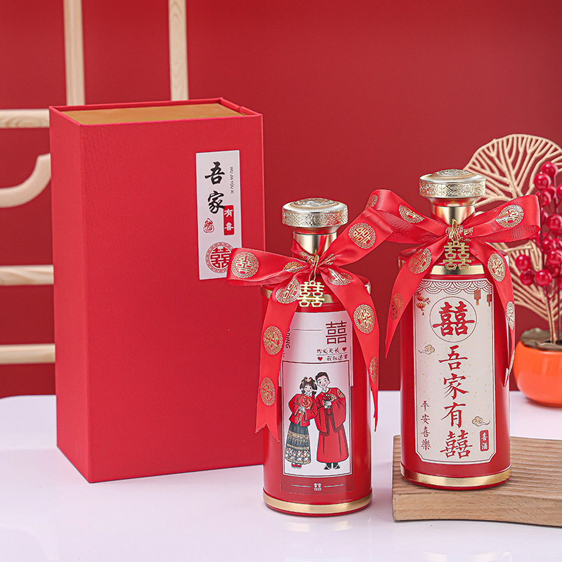 卸売:吾家有喜高級婚酒瓶、白ワイン空瓶、結婚式披露宴専用、フルセット、文字印刷可能、ギフトボックス
