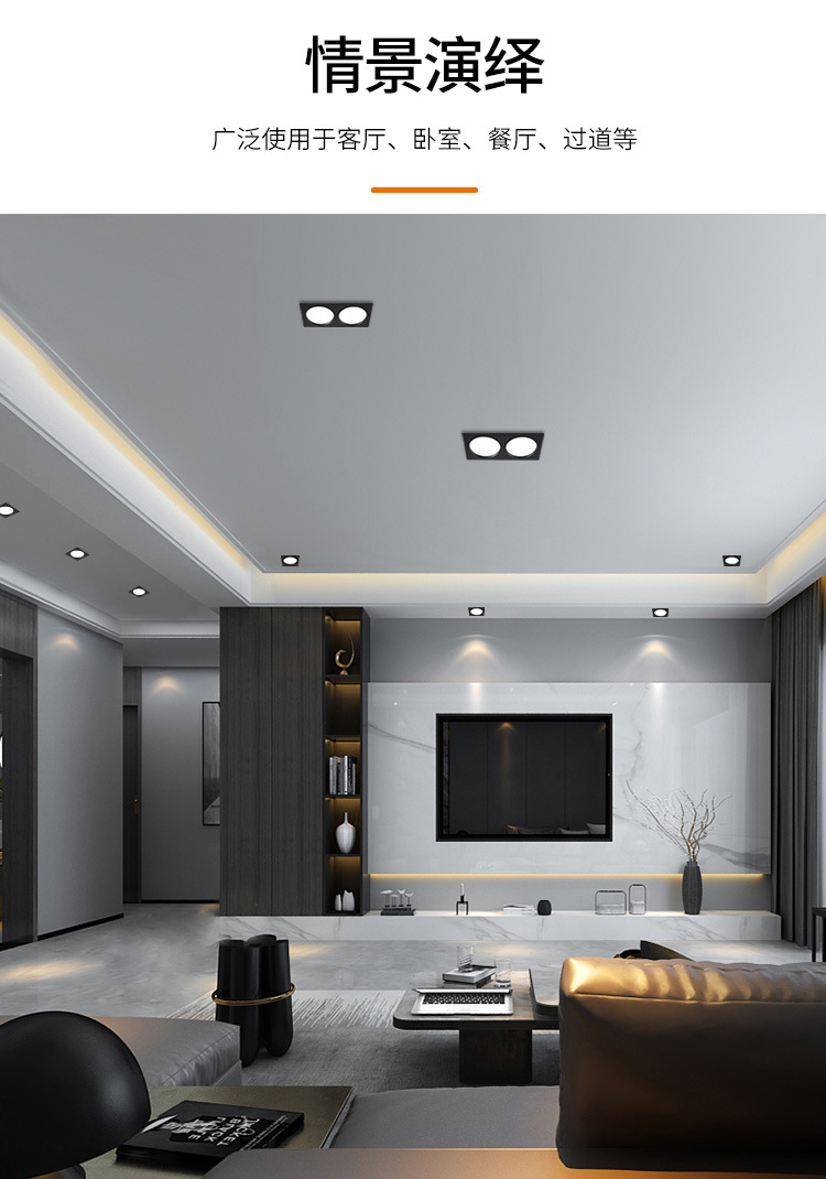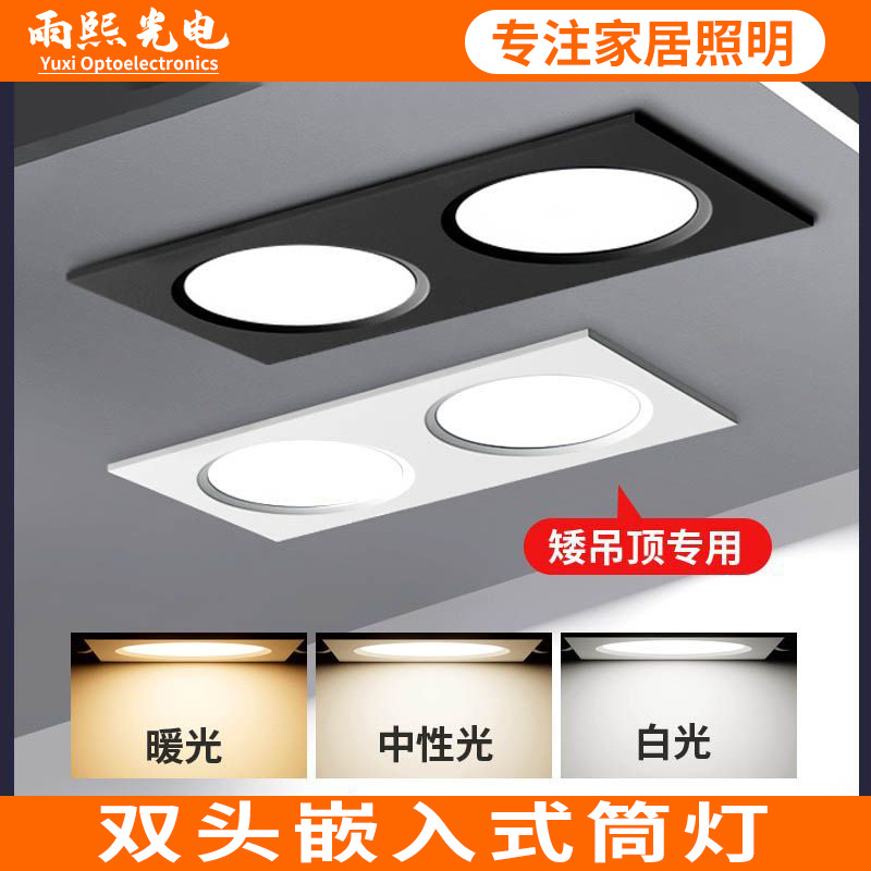 双头筒灯双孔嵌入式超薄长方形客厅灯过道玄关天花led射灯斗胆灯