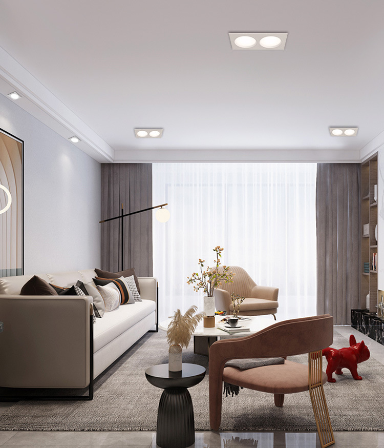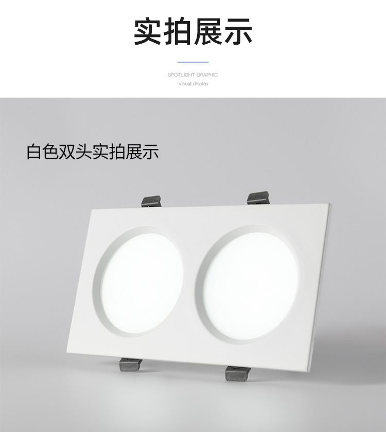 LEDダブルヘッドダウンライト天井グリルライト長方形スポットライト埋め込み式天井ライトダブルダウンライト二列闘胆ライト