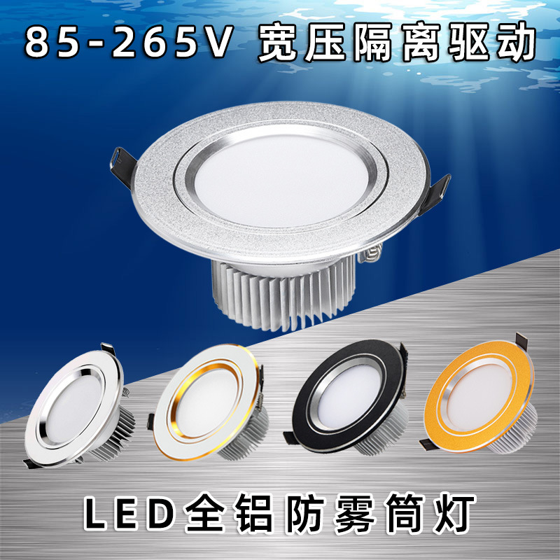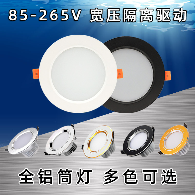 メーカー卸売 防眩LED金縁ダウンライト 三色調光 天井照明 ホームデコレーション リビングルーム 工事用埋め込み型ダウンライト