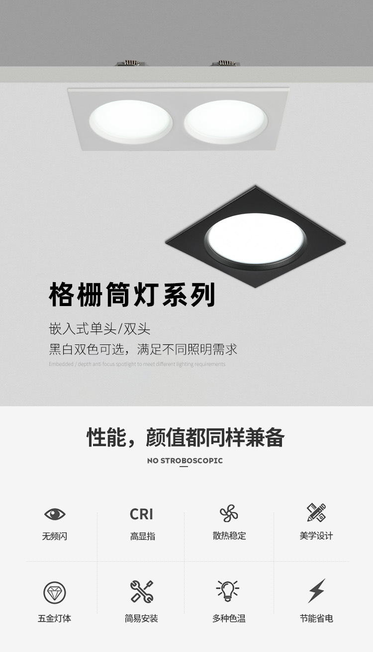 led格栅灯15x15嵌入式网格栅吊顶专用灯葡萄架灯方形筒灯斗胆射灯