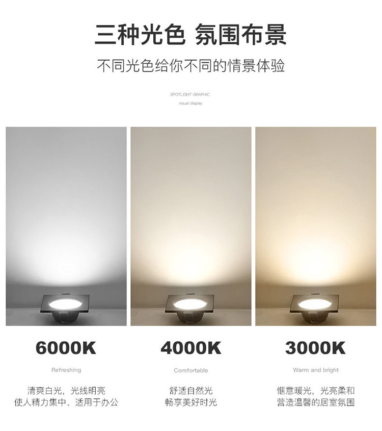 黒色超薄型LEDダウンライト、3色変光、ホールライト、衣料品店、レストラン、ホテル、商業施設用ダウンライト