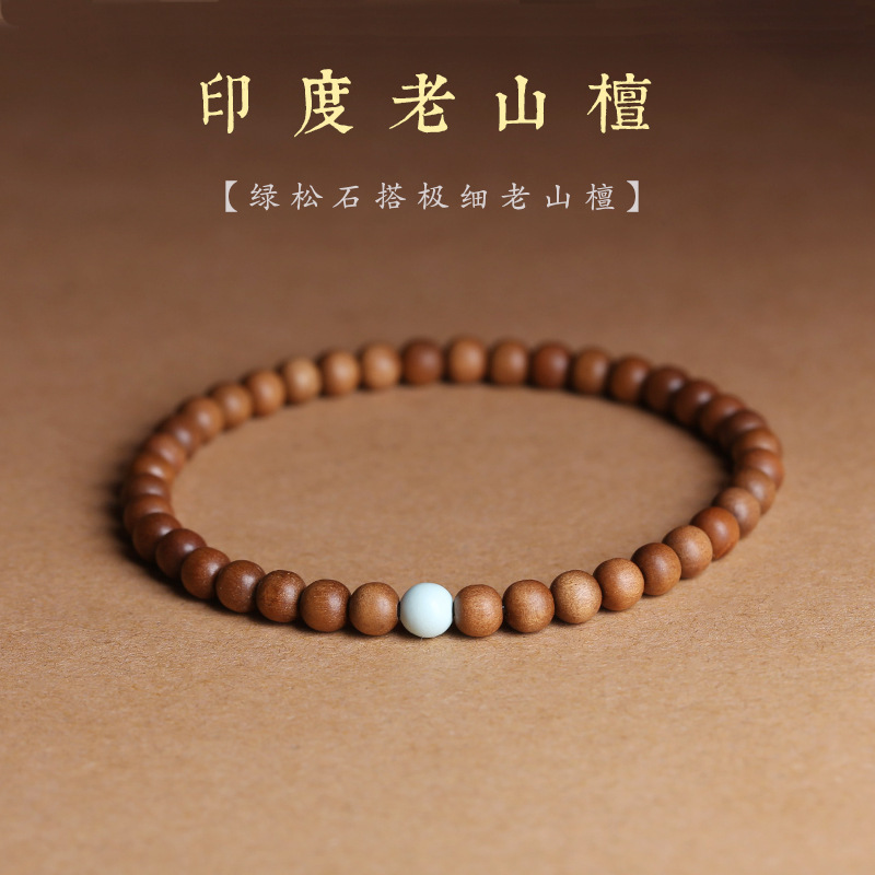 インドの古い山の檀木の手の串の単輪の仏珠は緑の松石の朱砂の男女の金を組み合わせてシンプルで復古的な単輪の手の串を結びます。