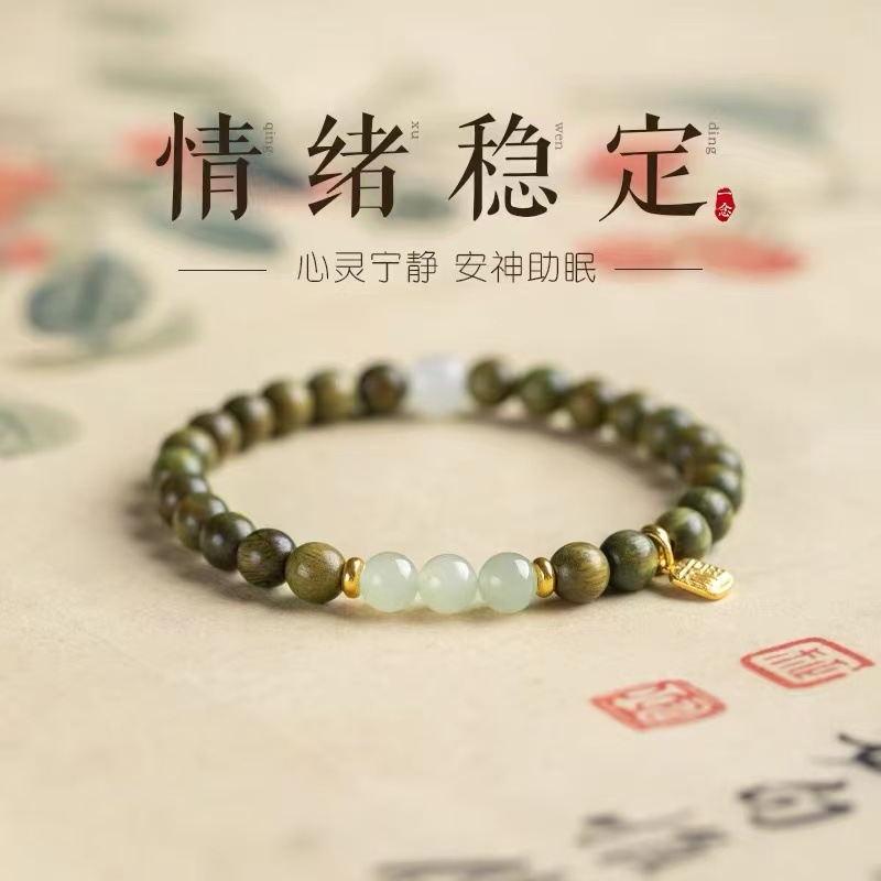 天然绿檀木手串女款和田玉沉水级圆珠木质佛珠念珠檀香木手链手饰