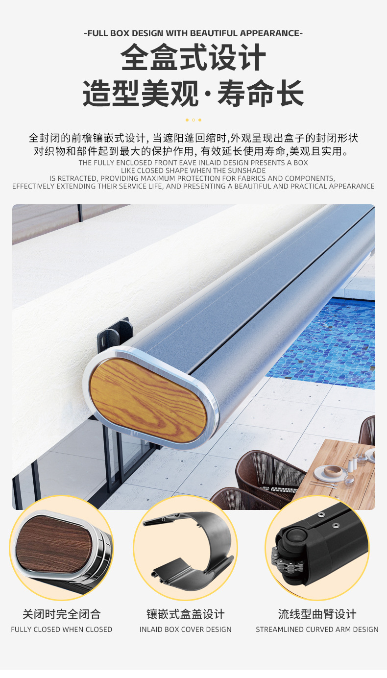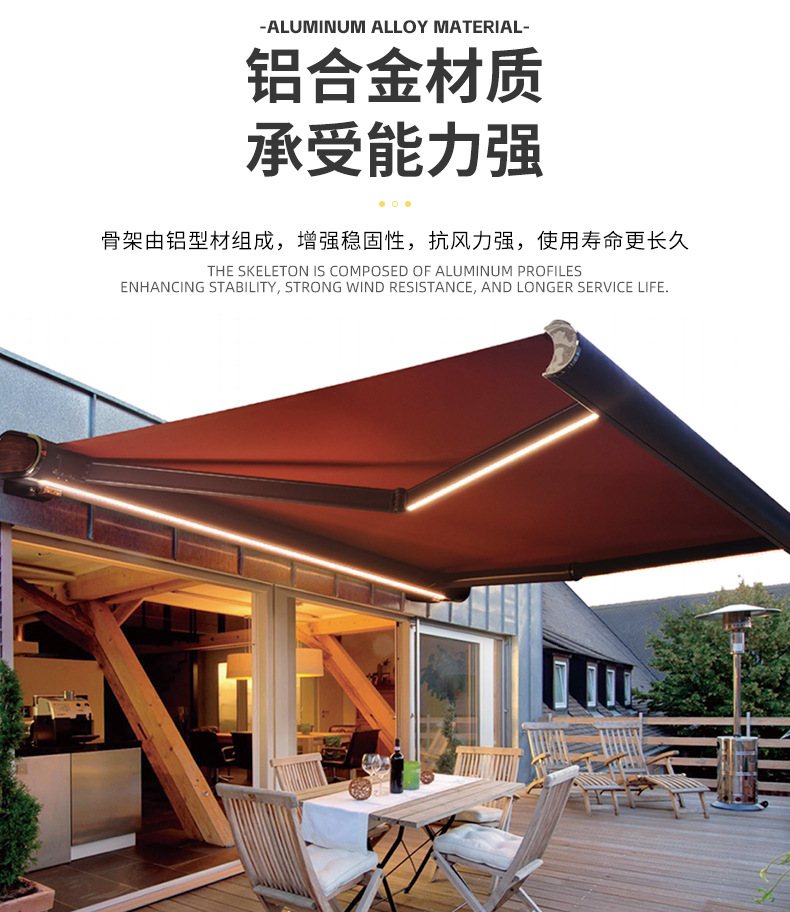 全盒电动伸缩式遮阳棚 自动遥控带灯手臂铝合金雨蓬庭院阳台雨棚