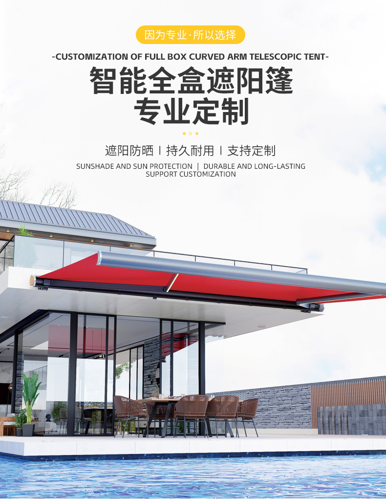 屋外ハイエンド大気電動半箱式曲腕テント