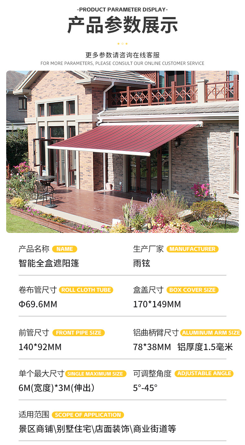クロスボーダー全箱アルミ合金電動折りたたみサンシェード雨棚別荘庭バルコニーカフェ伸縮サンシェード
