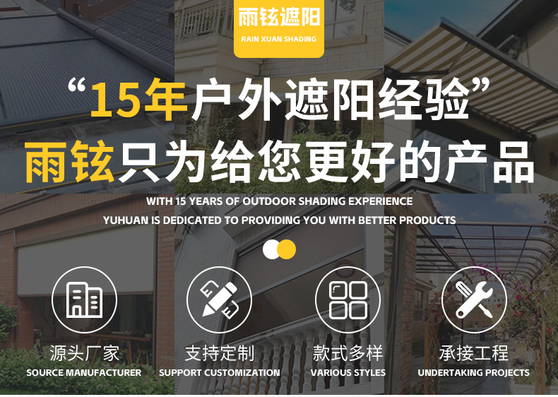クロスボーダー卸売り電動アルミ合金天幕断熱シェード金属リモコンシャッター日焼け止め庭園天井