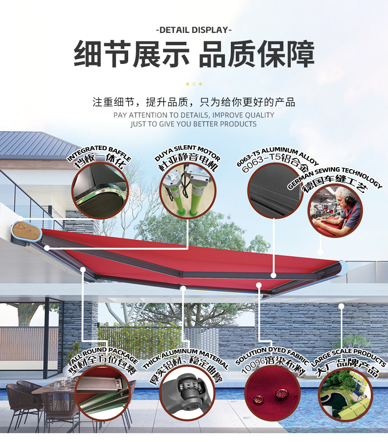 クロスボーダー卸売アルミ合金サンシェード伸縮式電動リモコンバルコニーサンシェード屋外伸縮式雨棚