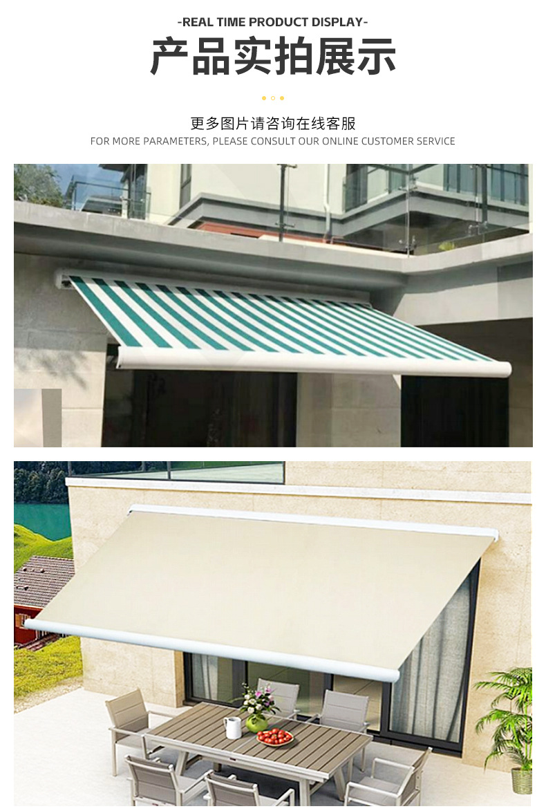 屋外アルミ合金店舗日除け店日焼け止め雨蓬窓ベランダ伸縮棚曲腕折り畳み雨幌