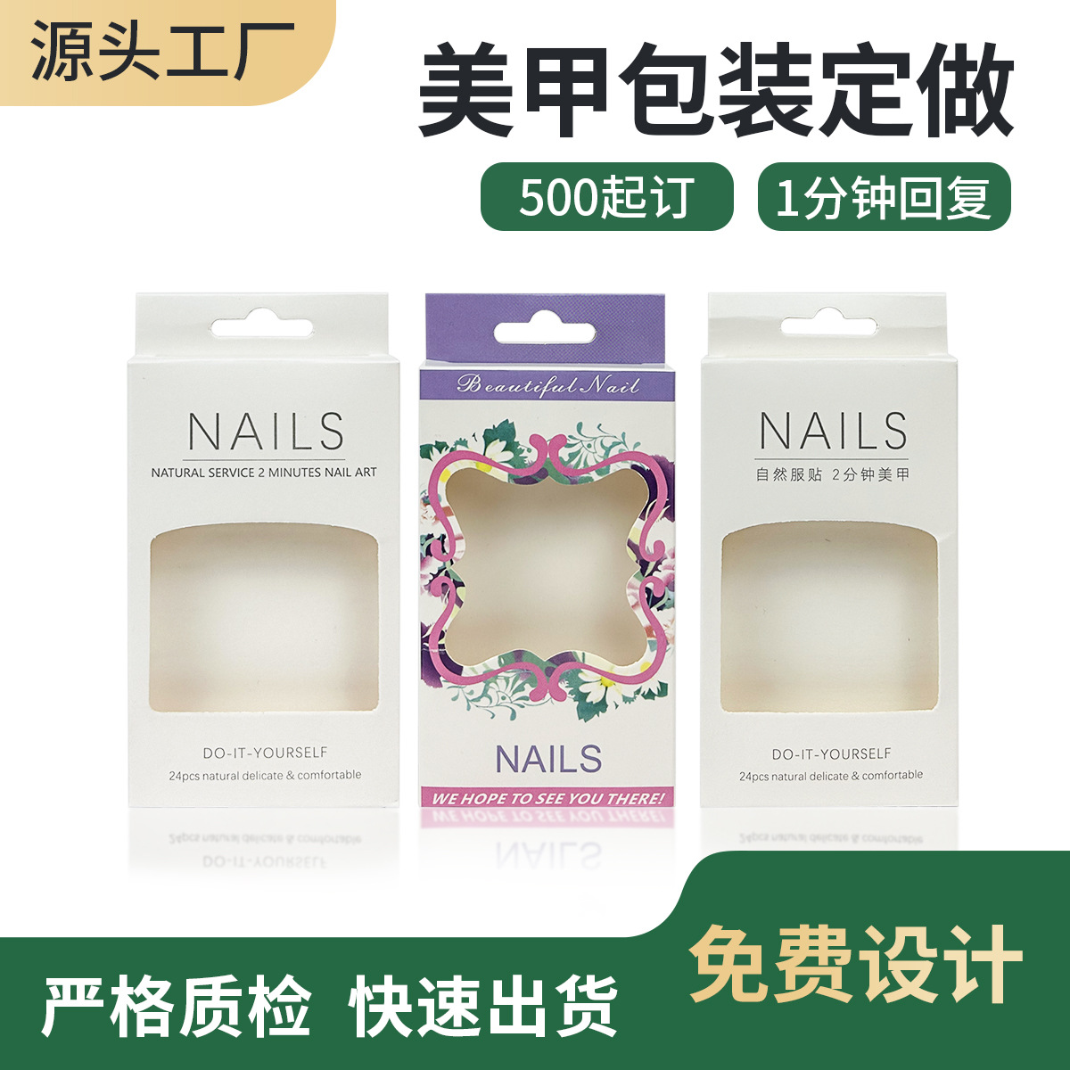 甲の紙の現物の包装箱を身につけて透明なネイルケースをカスタマイズします。