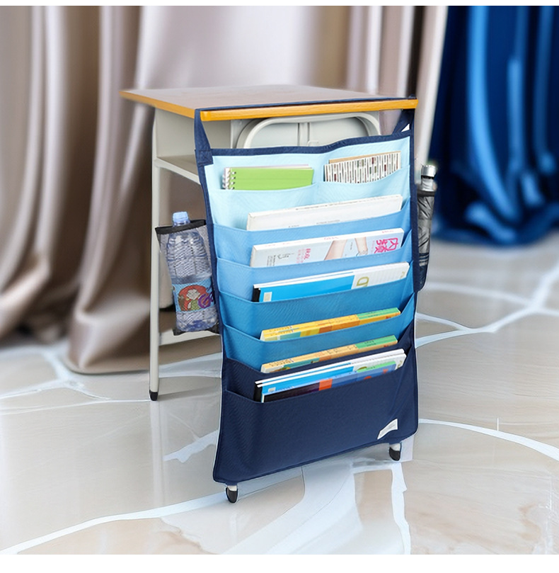机の学生は本の袋を掛けます。中学校の高校の本は袋を収納します。