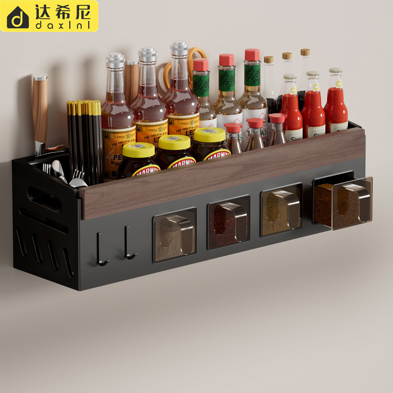 胡桃木家用厨房多功能调料架刀架壁挂式墙上台面调味品收纳置物架