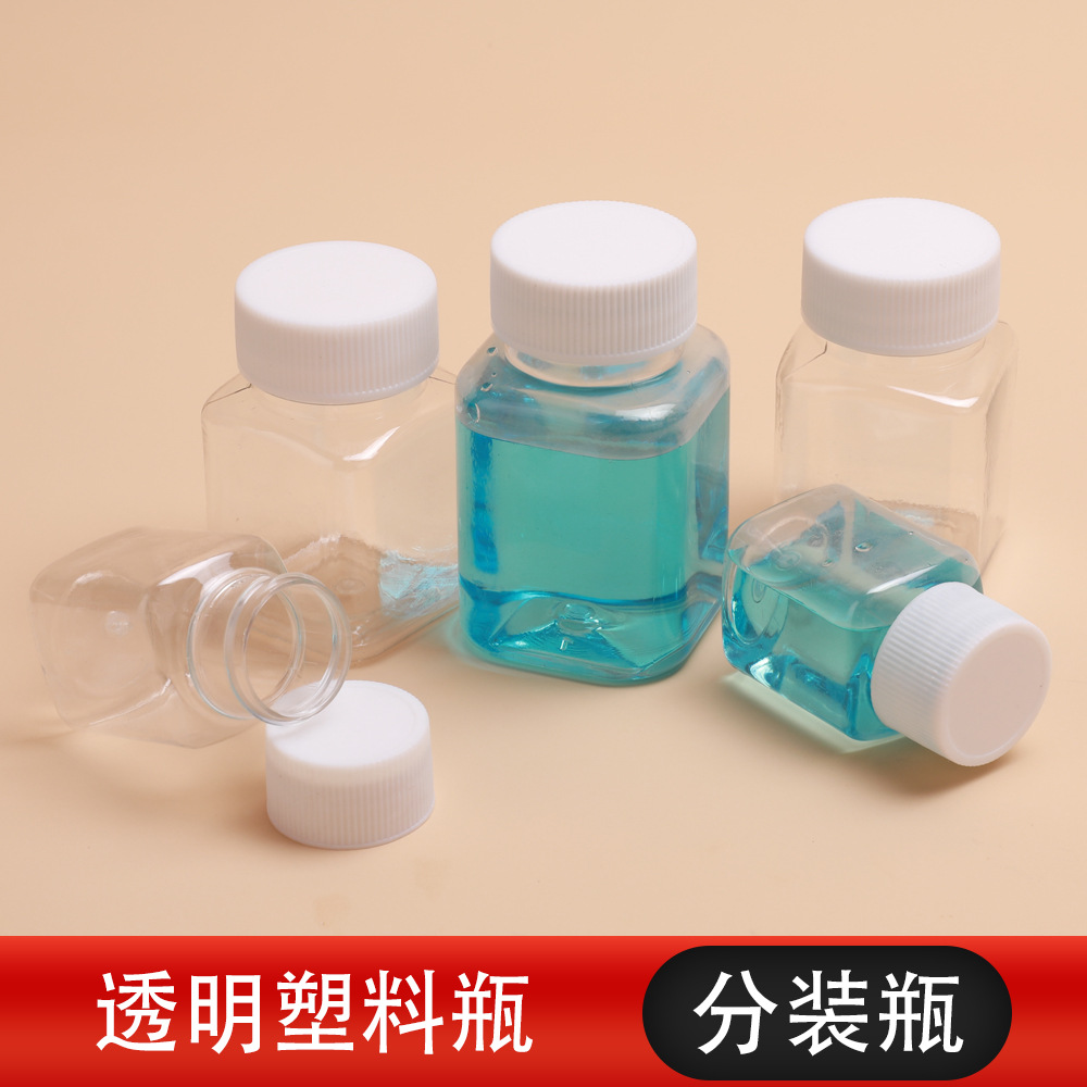 卸売りPETサンプル試薬瓶透明大口密封カプセル瓶小方瓶餌小薬分注瓶