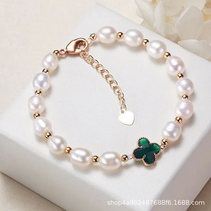 新商品は真珠の四つ叶のクローバーのブレスレットを模しています。