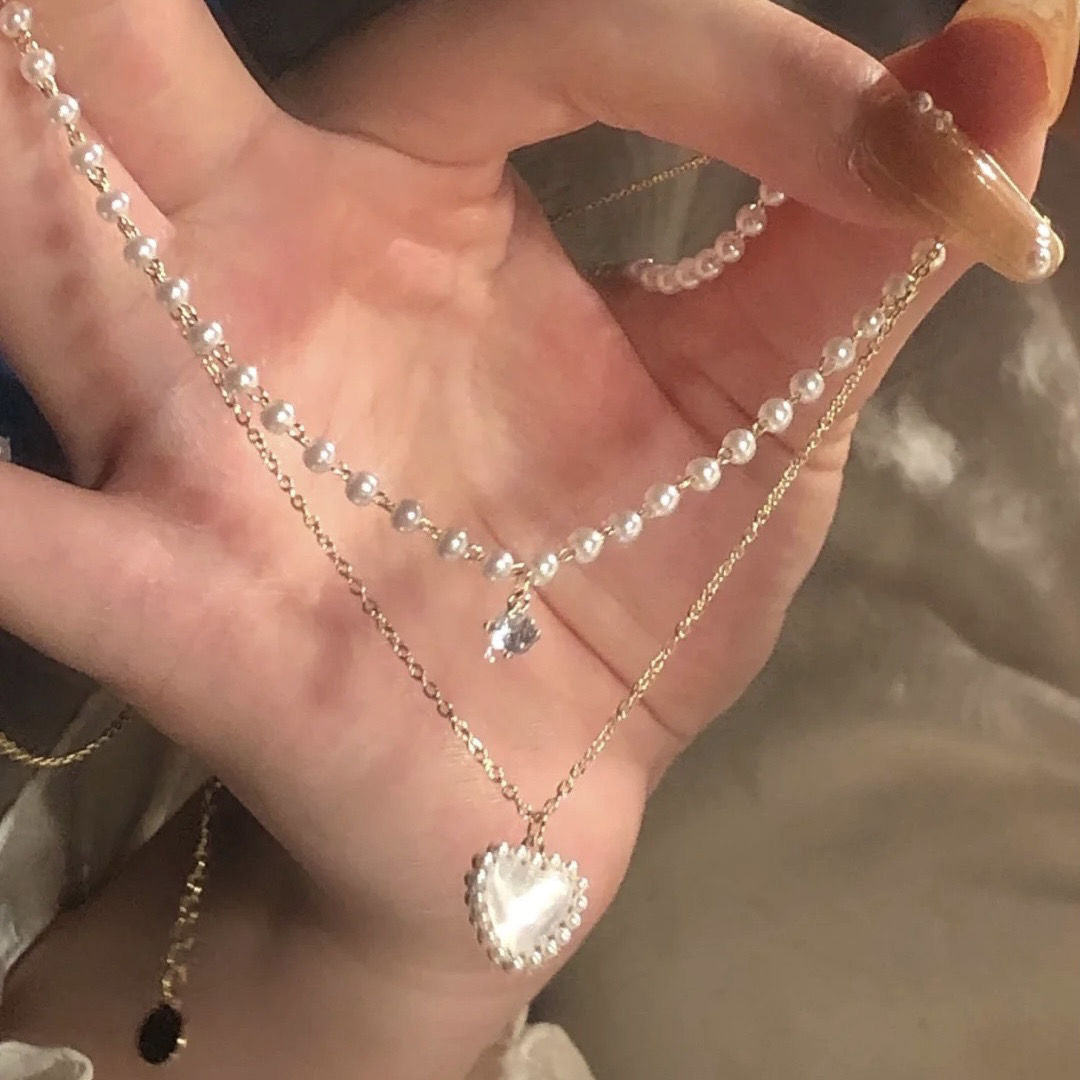 小紅書同項淡水真珠二重畳は愛のネックレスをつけています。