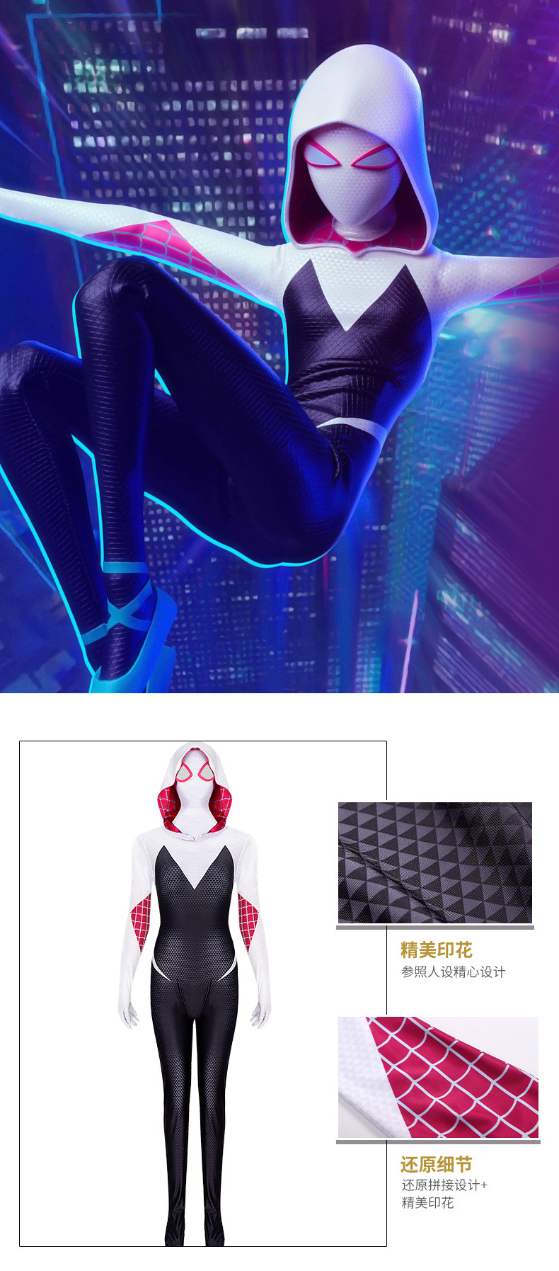 格温蜘蛛紧身衣侠cos服饰平行宇宙衣服cosplay连体衣儿童成人服装