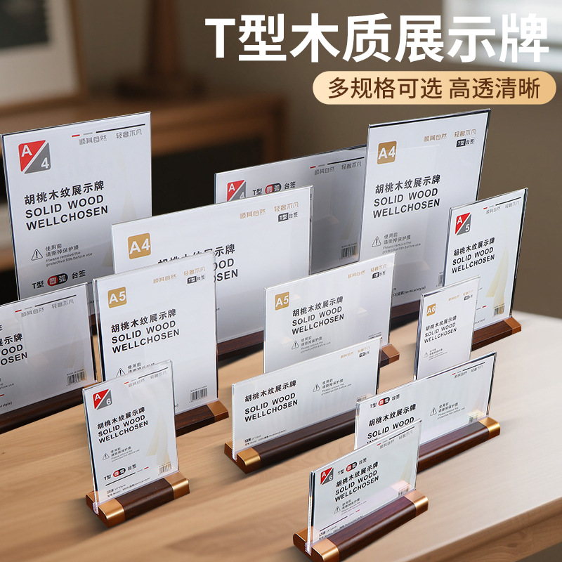 スポットアクリルテーブルカード a4 クルミ木目底テーブルサインデスクトップオフィスディスプレイテーブルレストラン価格タグ卸売