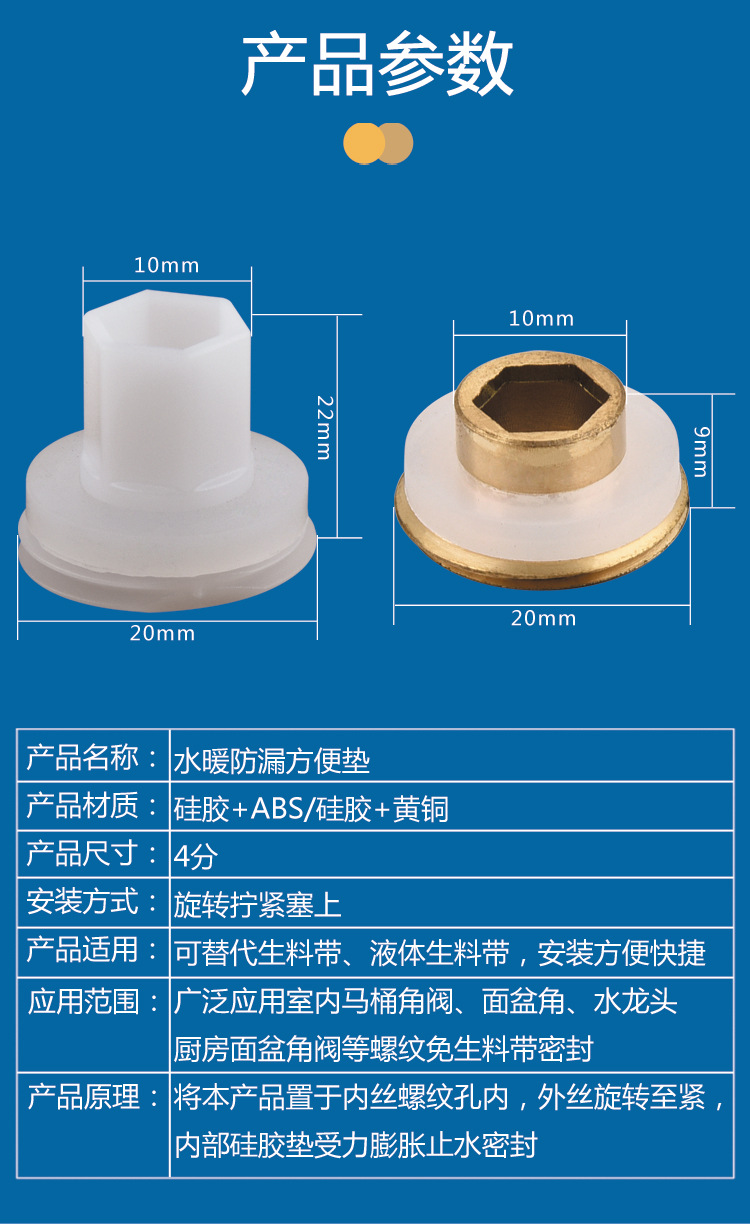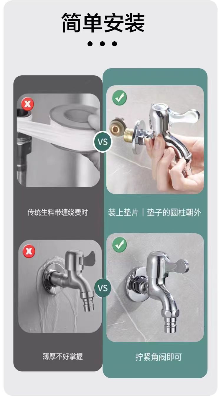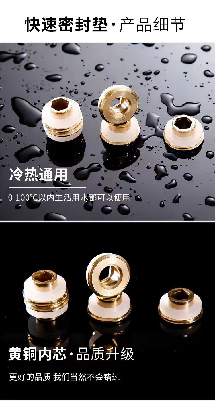 黄铜替代免生料带垫片4分快速安装防漏水密封圈三角阀水龙头配件