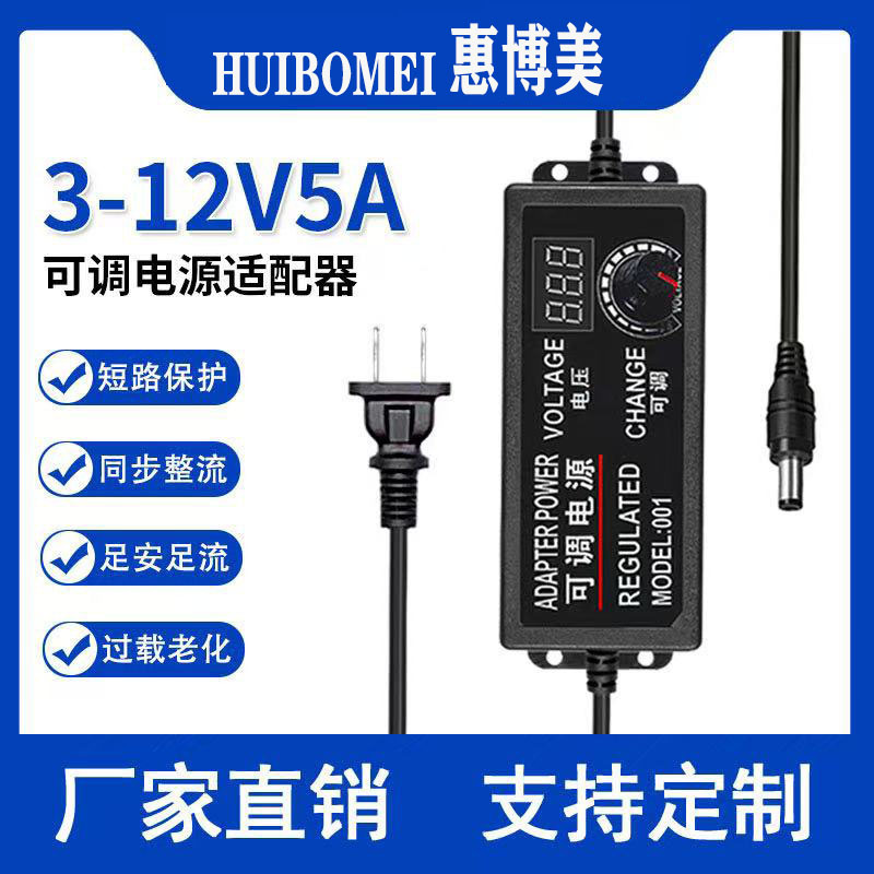 3-12V5A可调电源 可调压电源适配器自带显示 无极调速 电源60W