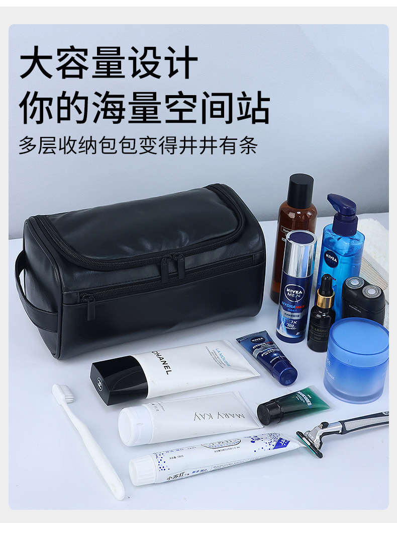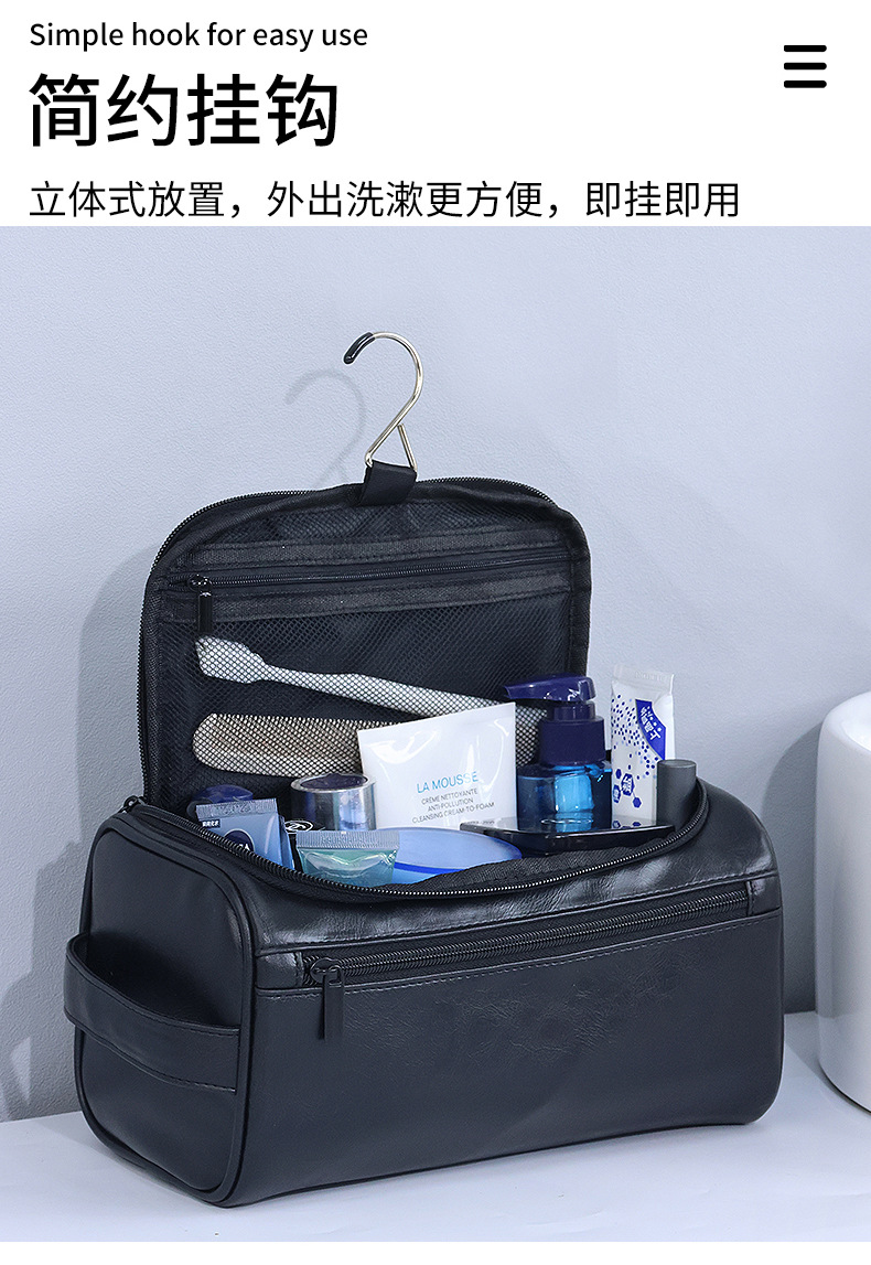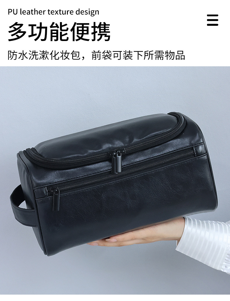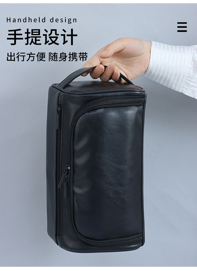 大容量メンズ洗面バッグ外出ポータブルpu防水化粧バッグシンプルな出张旅行ハンドバッグ収纳袋