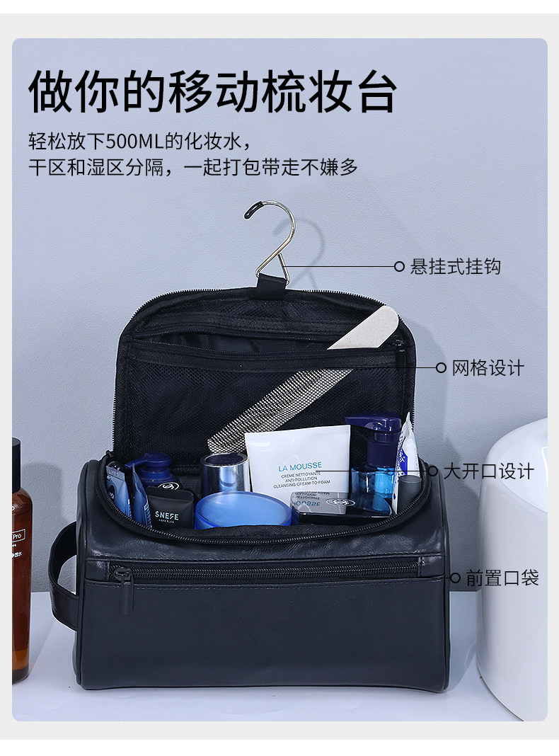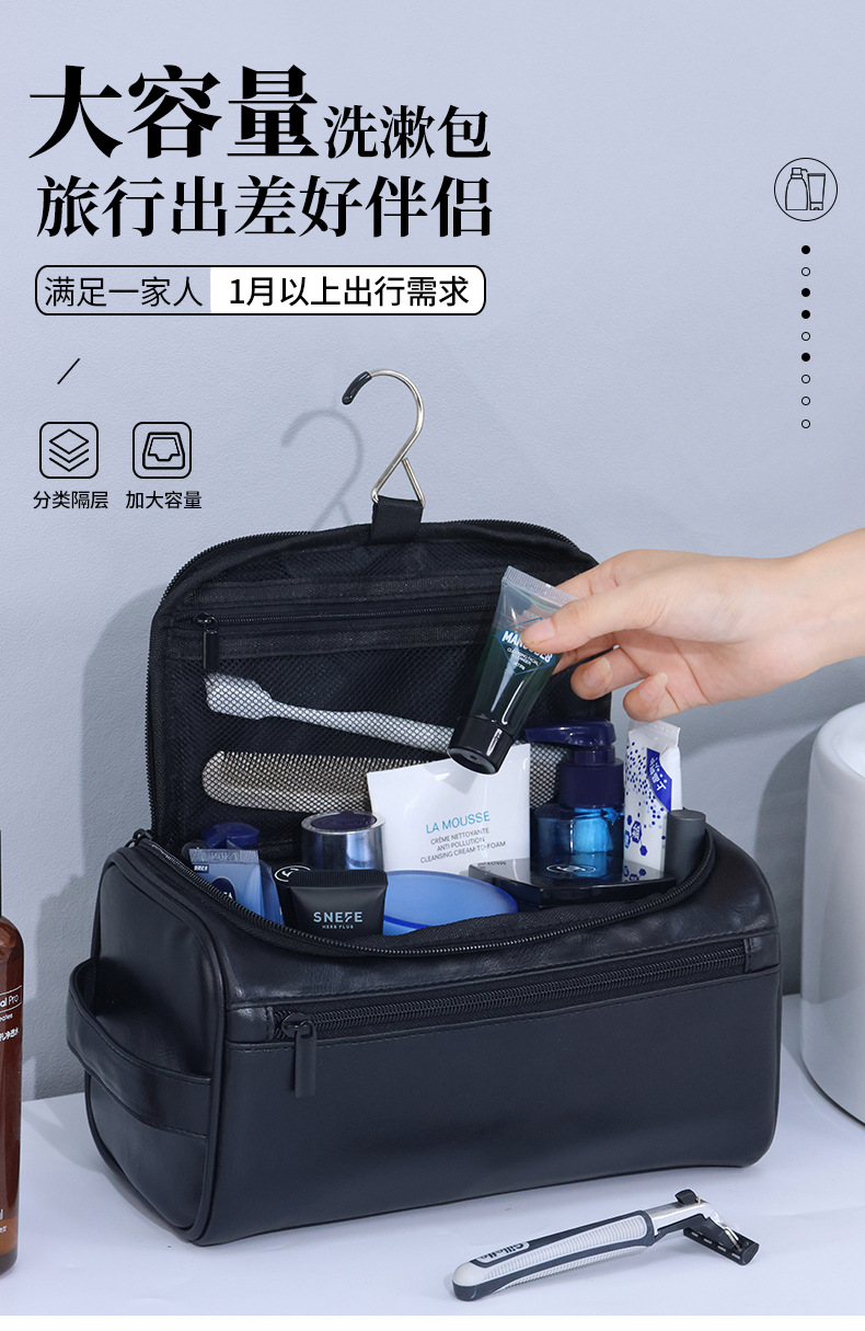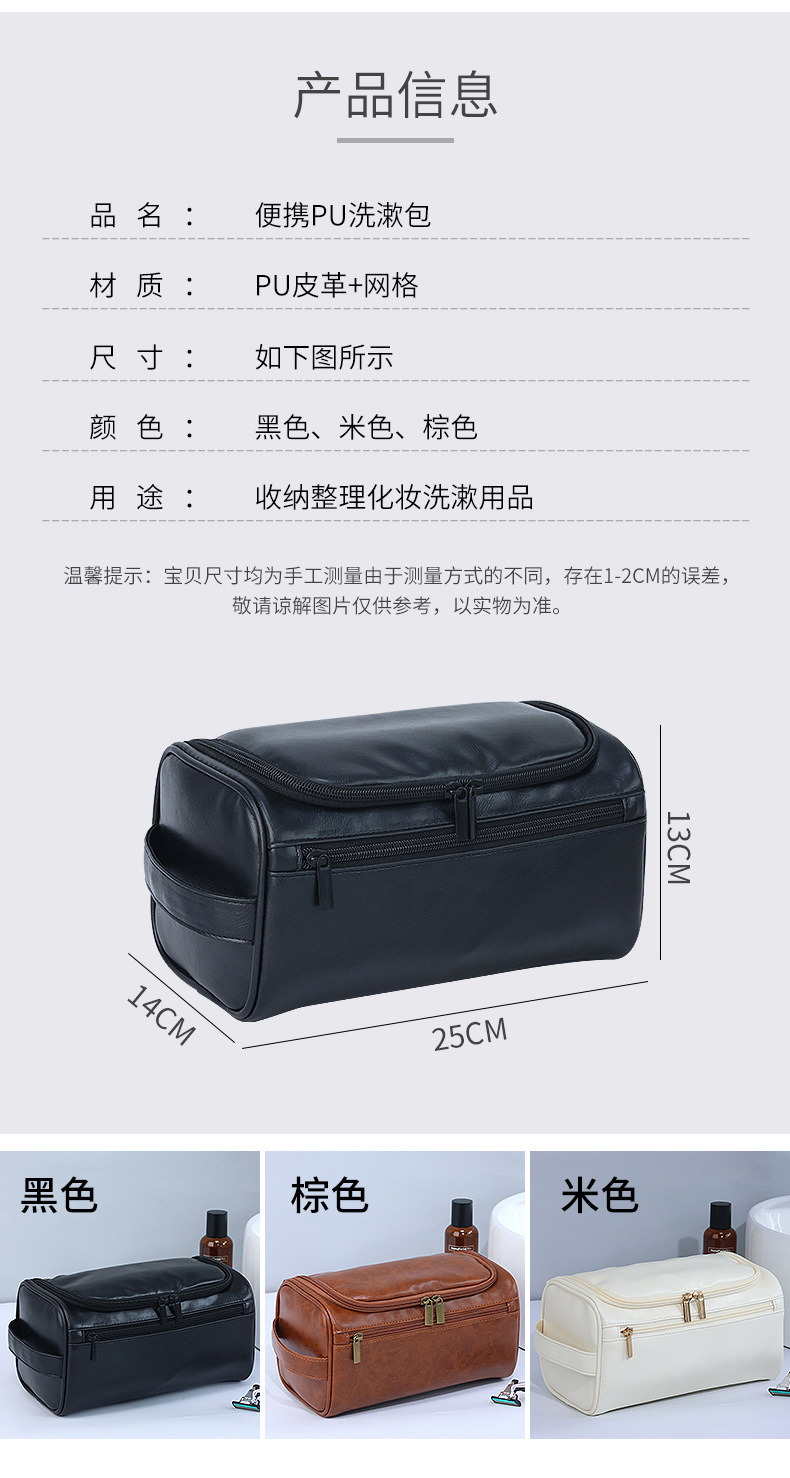 大容量メンズ洗面バッグ外出ポータブルpu防水化粧バッグシンプルな出张旅行ハンドバッグ収纳袋