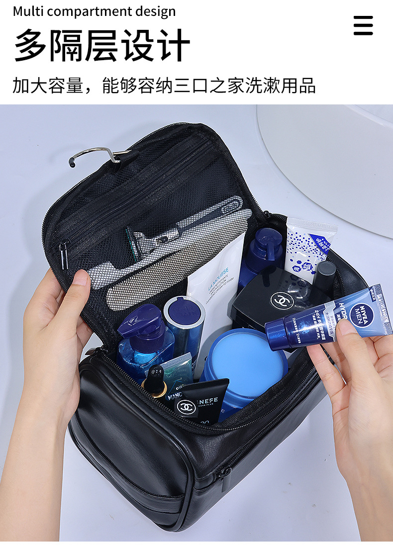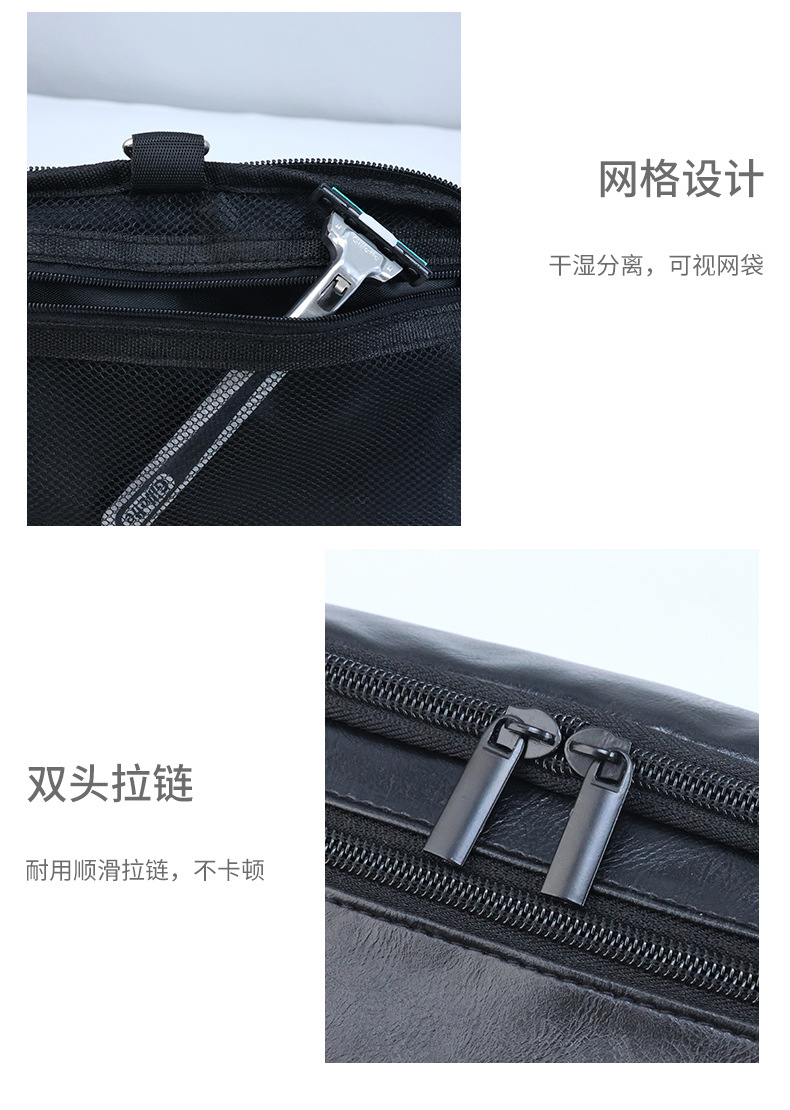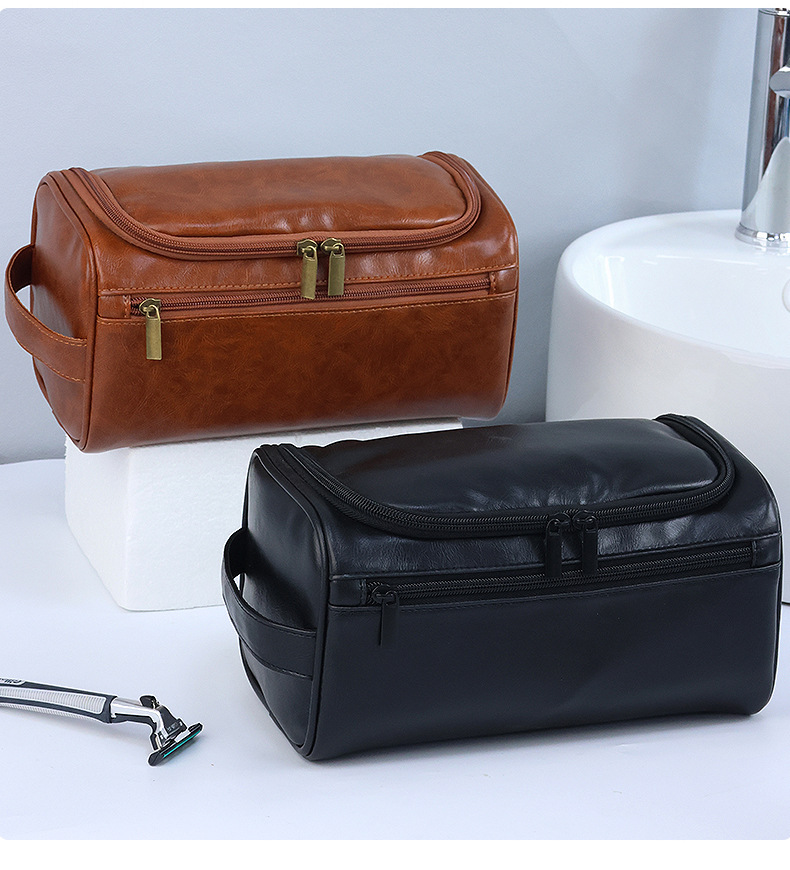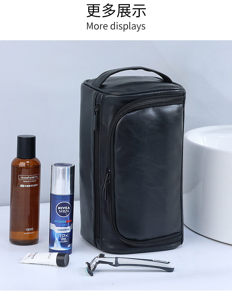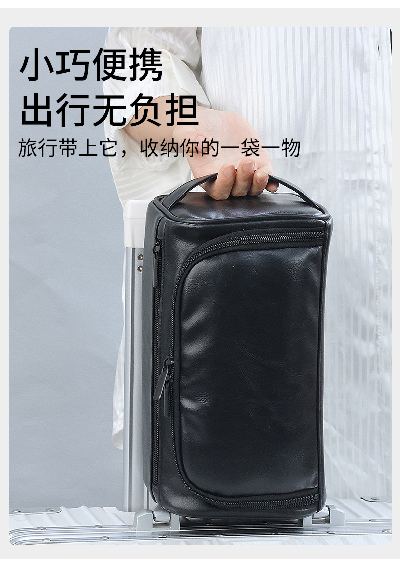 新品puレザーメンズ多机能高颜値ダブル化粧バッグハンドバッグ大容量収纳旅行ポータブル